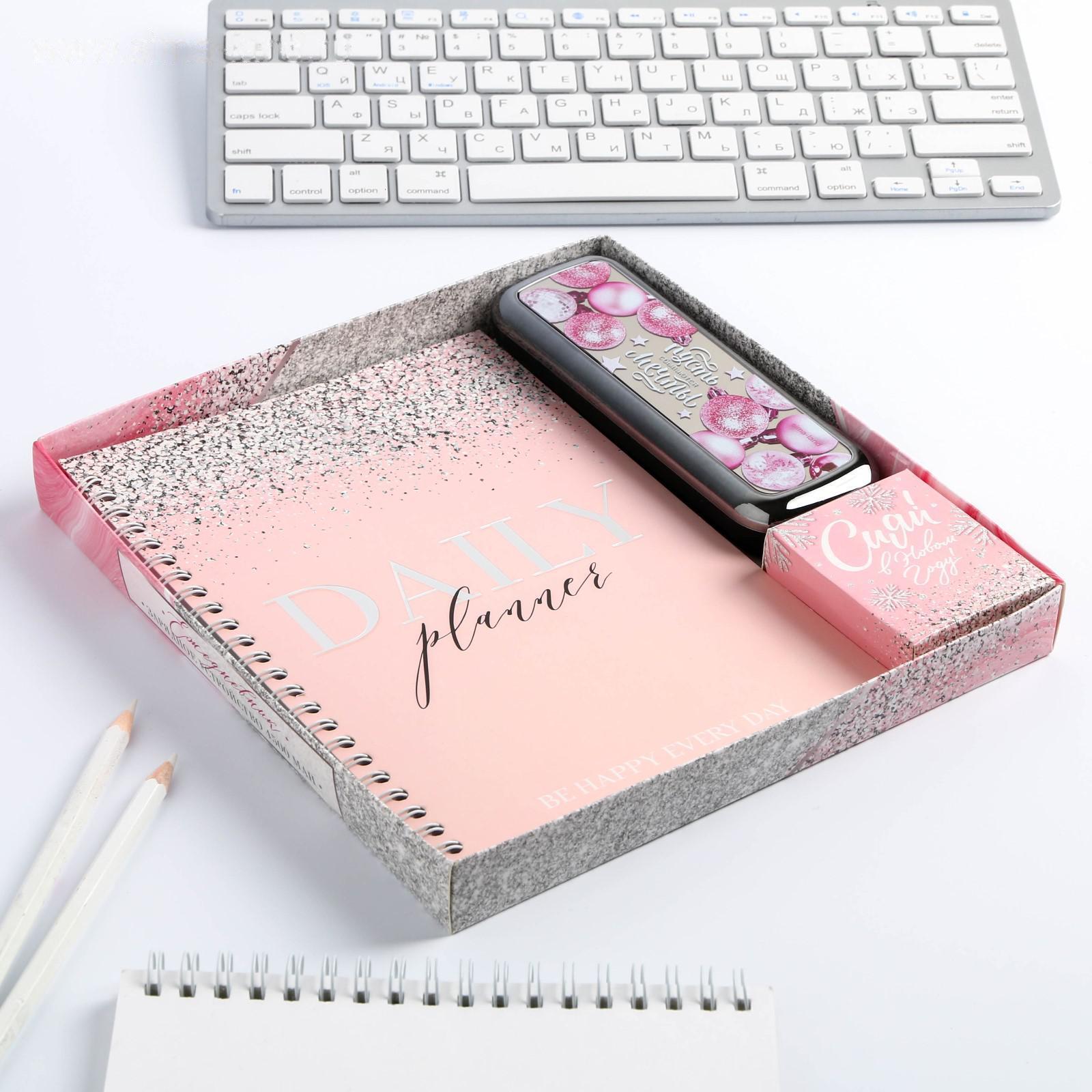 Набор с ежедневником и портативным аккумулятором станет отличным подарком для делового человека. Ежедневник напомнит о важных встречах и делах, а портативный аккумулятор поможет всегда оставаться на связи.
