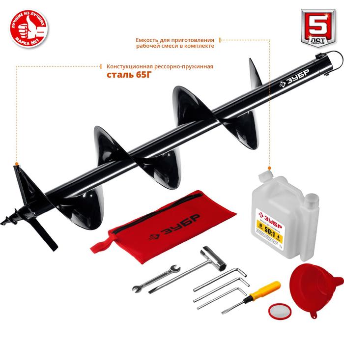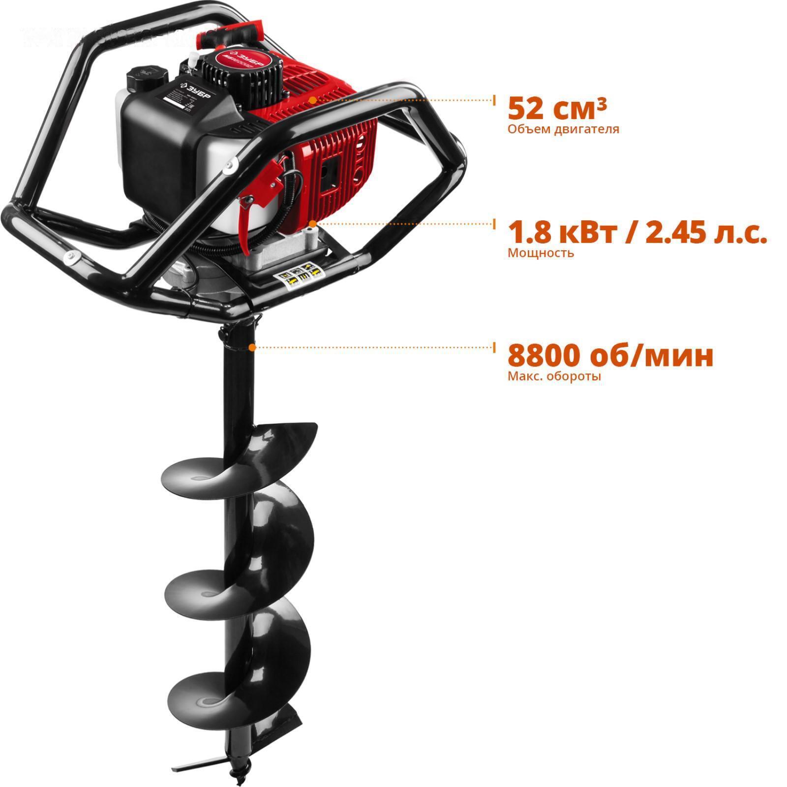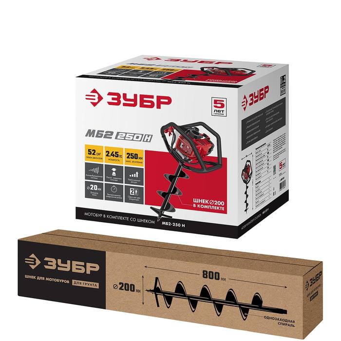 Мотобур со шнеком "ЗУБР" МБ2-250 Н, 2Т, 1.8 кВт, 52 см3, 8800 об/мин, d=20х250 мм 5385051