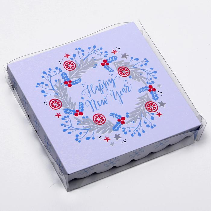Коробочка для печенья "Счастливого Нового Года" двухсторонняя, 15 х 15 х 3 см 5204199