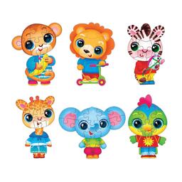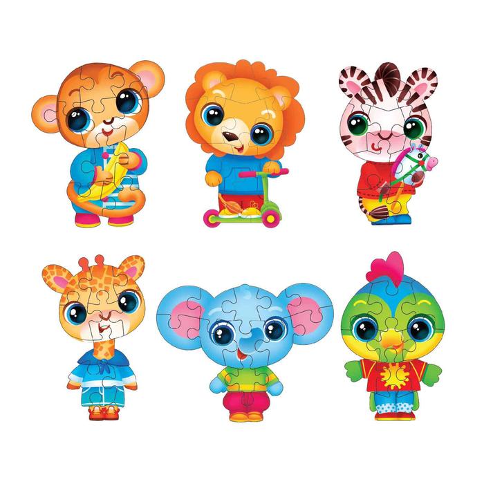 Шоубокс дарит вам 6 разных картинок. Каждая коробочка дополнительно упакована в термполёнку и простикирована. Детали сделаны крупными (5 х 5 см) специально для малышей. Фигурный контур пазла, небольшое количество элементов (что не даст вниманию ребёнка рассеяться), а также яркие рисунки - вот преимущества наших пазлов!