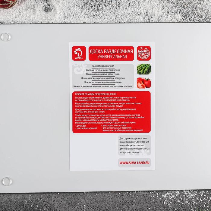 Стеклянная разделочная доска — это практичный аксессуар для нарезки продуктов, стильное украшение кухни и эффектная подставка для блюд. Стеклянная поверхность нейтрально относится к посторонним ароматам. Она не впитывает запахи и не поглощает влагу. Уход за изделием прост — достаточно промыть его под теплой водой и насухо вытереть салфеткой.