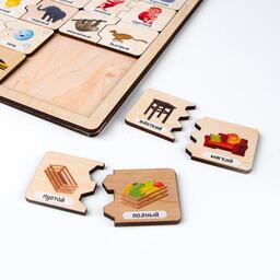 <p>Пазл представляет собой игру-головоломку, в которой необходимо составить картинку из большого количества фрагментов. Сборка такой мозаики не потеряла свою популярность благодаря разнообразию её видов и изображений. Пазл деревянный "Противоположности" 00791 поможет с пользой провести досуг, а также поспособствует развитию цветового восприятия, логического мышления и мелкой моторики.</p>