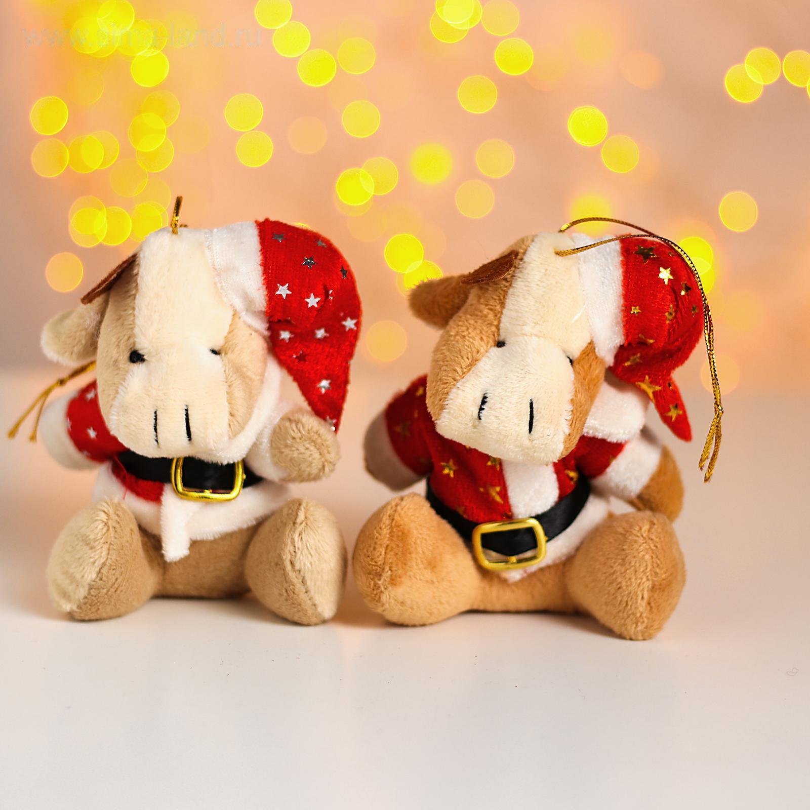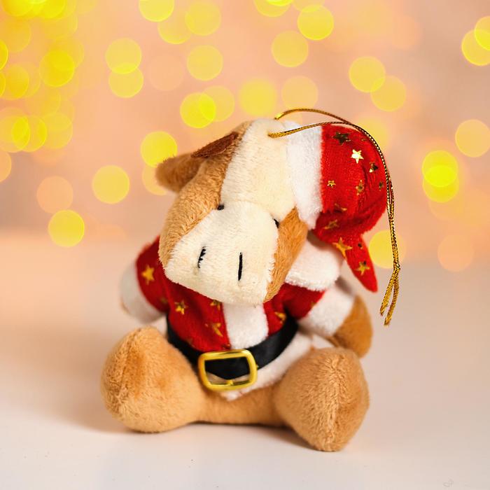 Мягкая игрушка «Бычок», в костюме Деда Мороза, на подвесе, цвета МИКС 4790869