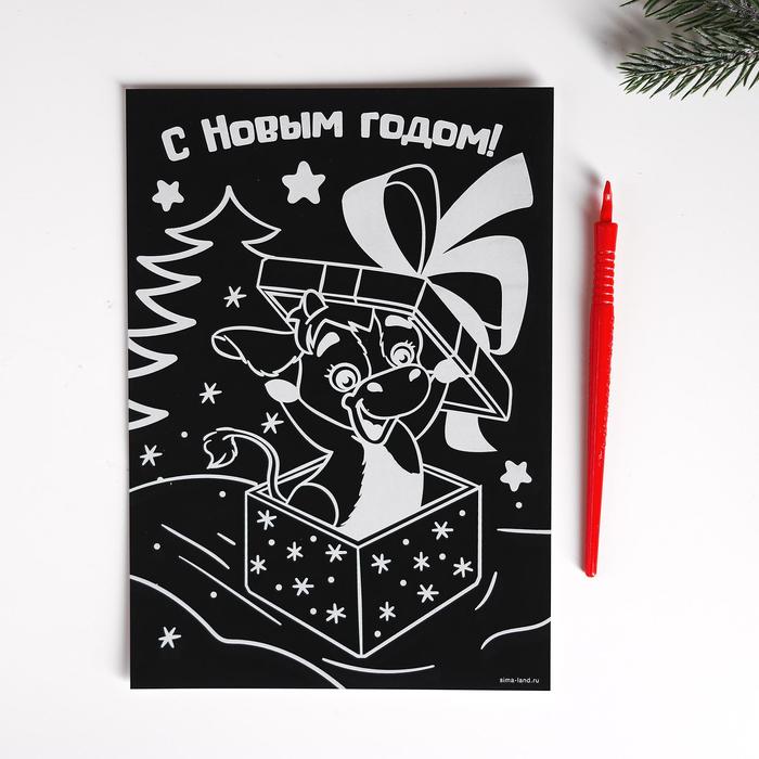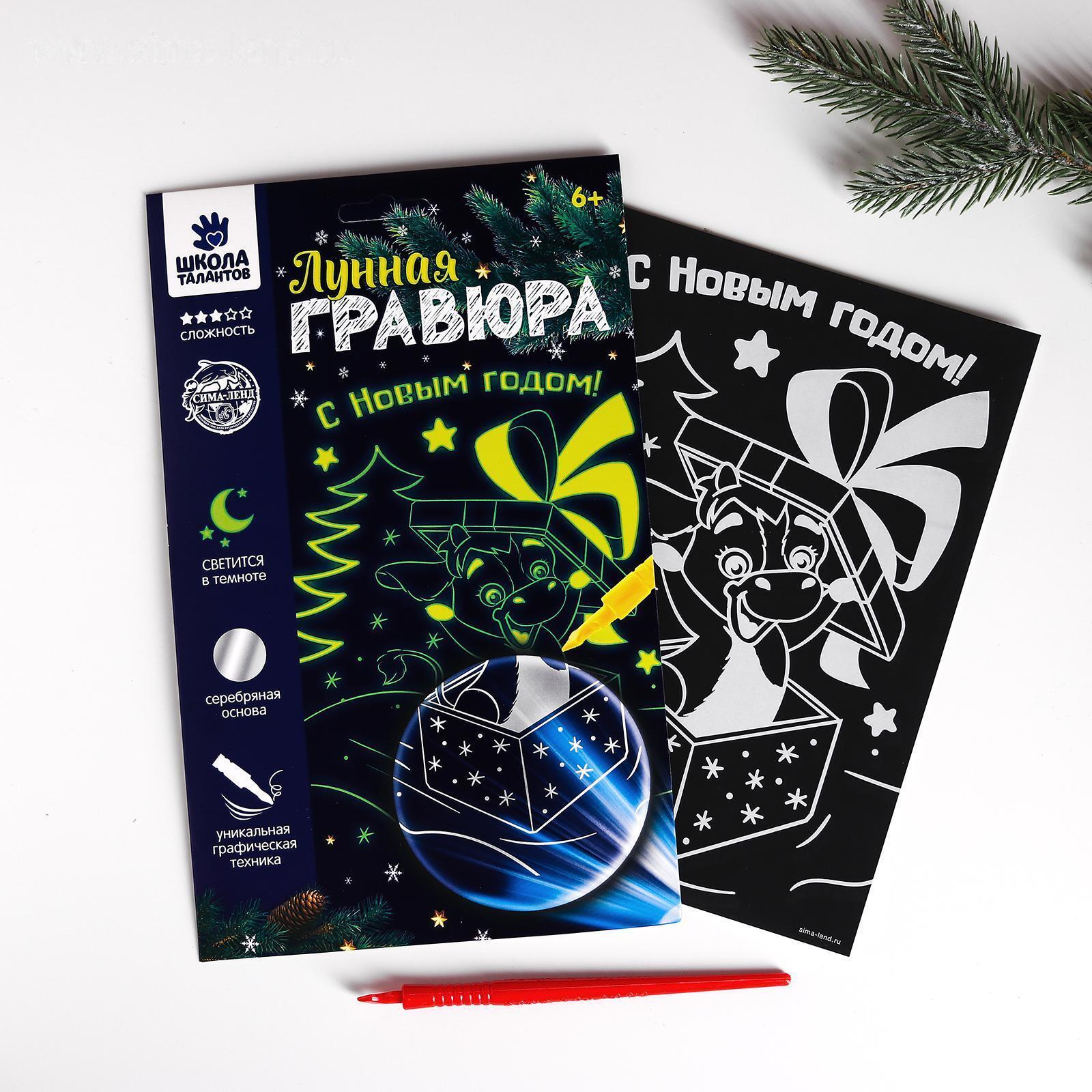 Лунная гравюра "С Новым годом!" Бычок 14,8*21 см 4994598