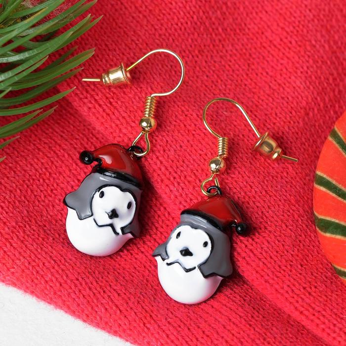 Серьги "Новогодние" пингвинчики, цветные в золоте 4964971