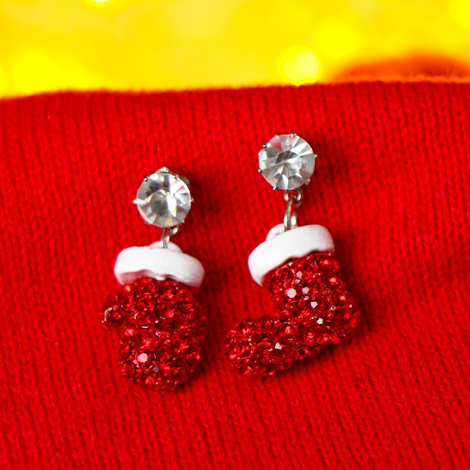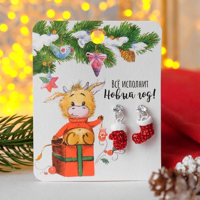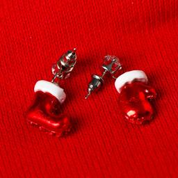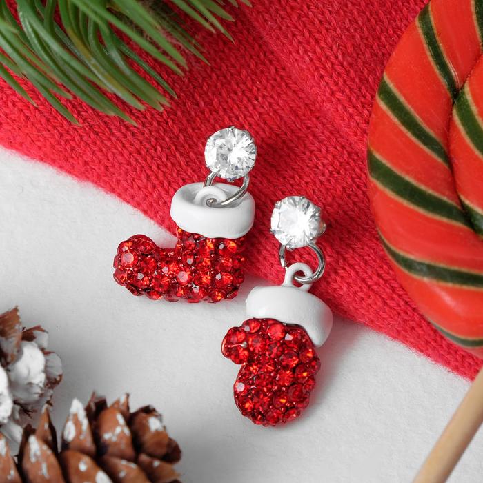 Серьги "Новогодние" варежка и валенок, цвет красно-белый в серебре 4964966