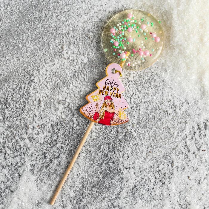 Леденец на палочке с посыпкой Girls Happy New Year: со вкусом розы, 30 г 5184724