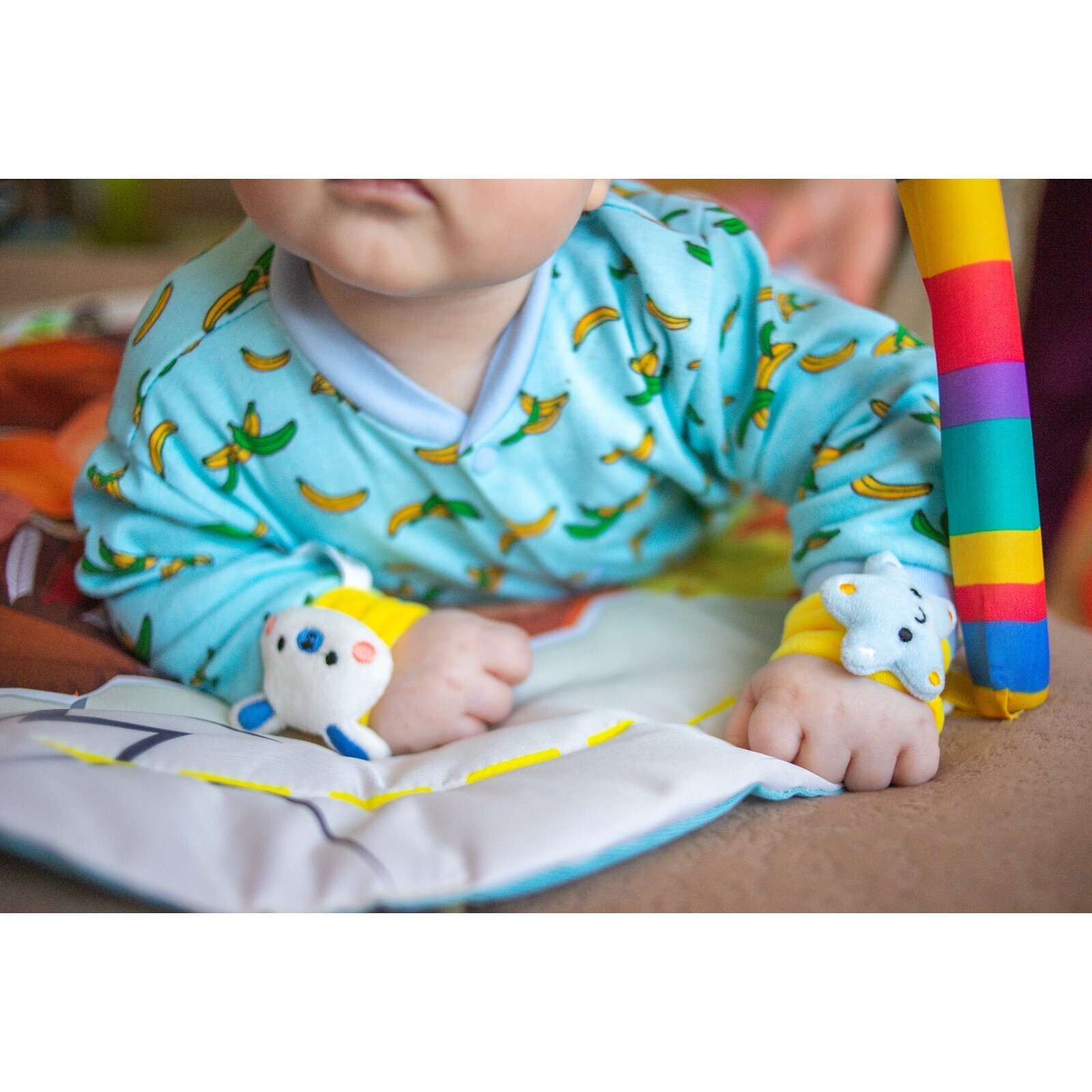 Малыш сможет до них дотянуться, потрогать ручками или просто погреметь ими, подергав ножками. Малыш играет и развивает не только мышцы, но и координацию, моторику, внимание, зрение, слуховое восприятие.