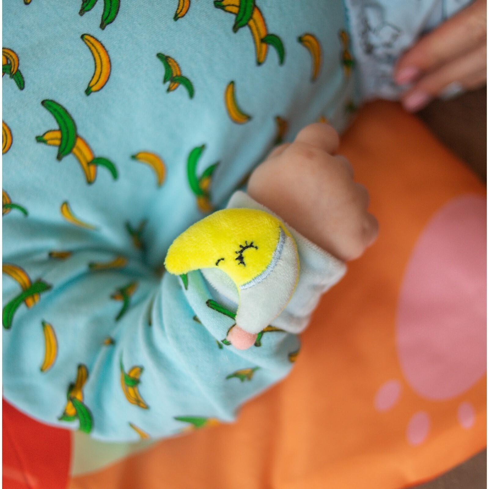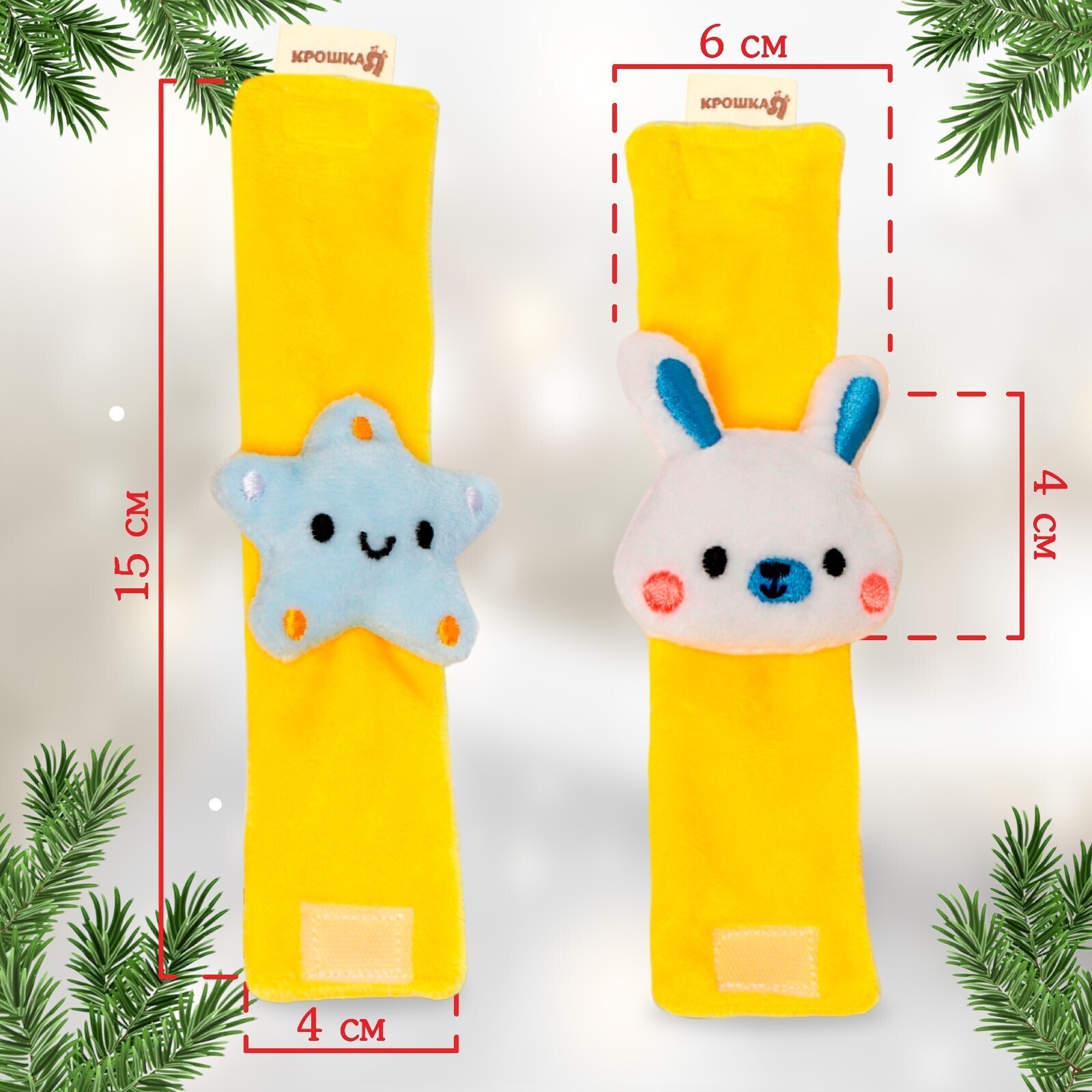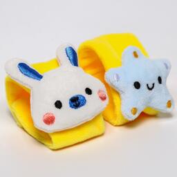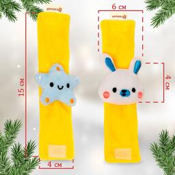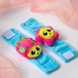Мягкие игрушки - браслеты крепятся на ручки ребенка и застегиваются на удобные липучки. А носочки одеваются на ножки.