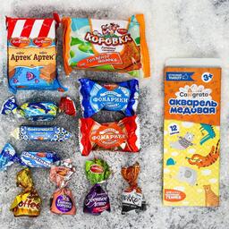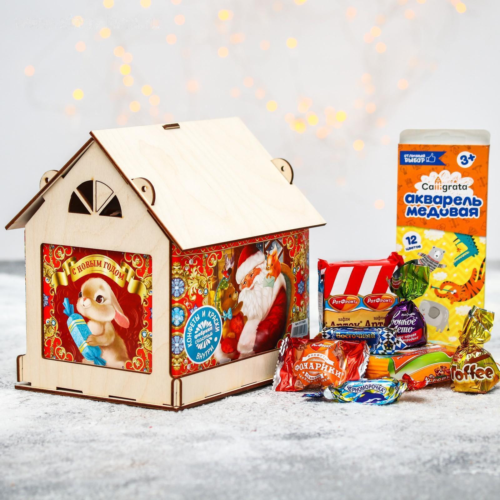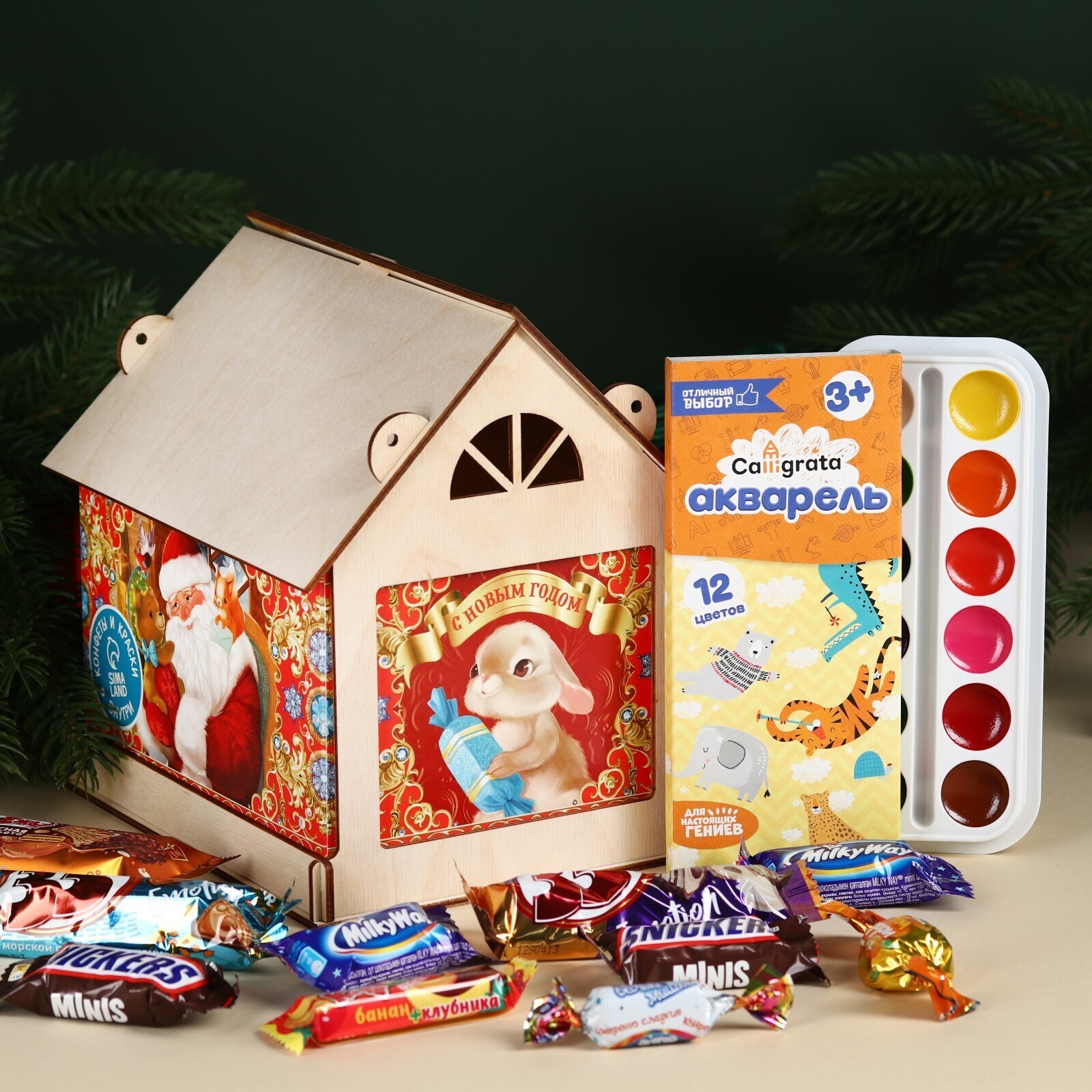 Подарочный набор «Дед Мороз»: конфеты 1000 г, краски 12 цветов, кормушка 5111620