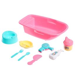 Заботиться об игрушечном крохе малышке поможет набор аксессуаров. Перед тем как уложить пупсика спать, девочка покормит его смесью из бутылочки, посадит на горшок и искупает в ванне. Ребёнок разнообразит игровые сюжеты — дочурка придумает множество увлекательных сценариев и невероятно весело проведёт время. После водных процедур расчешет волосы куколки, просушит их веном.