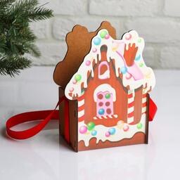 Кашпо деревянное, 15×9.5×19 см "Новогоднее. Пряничный домик", подарочная упаковка 5400582