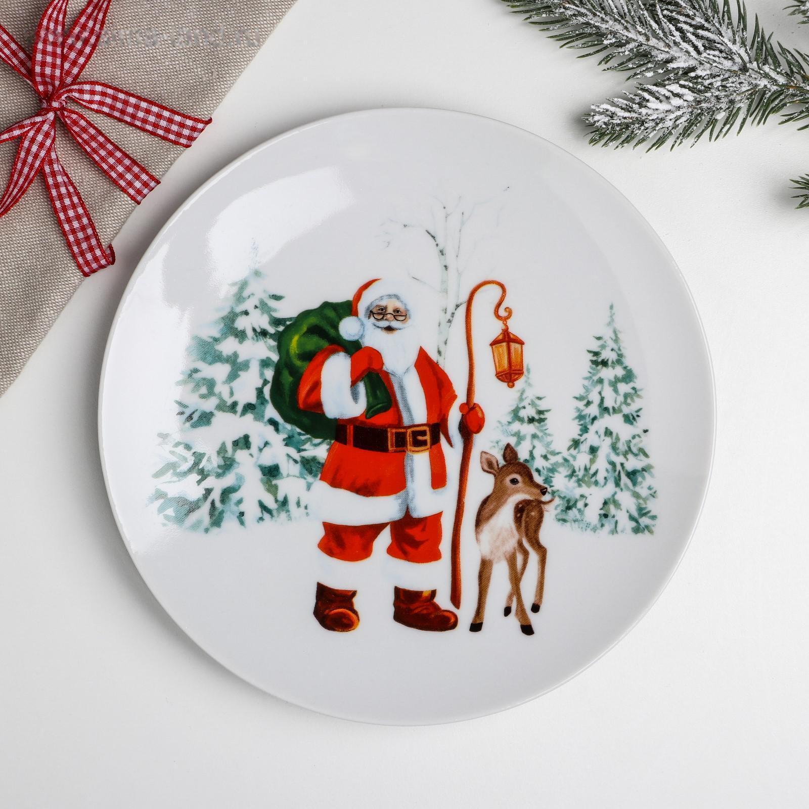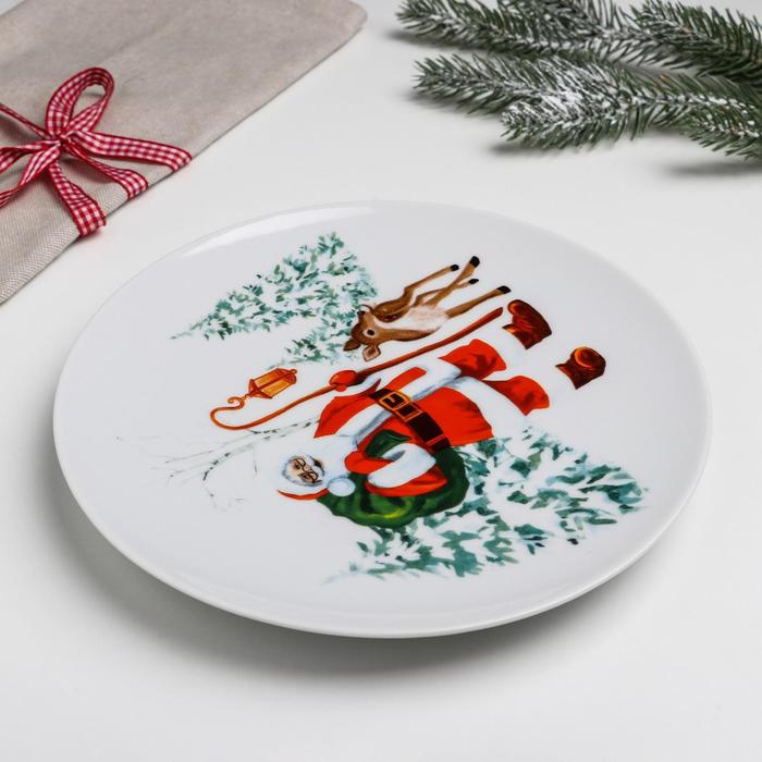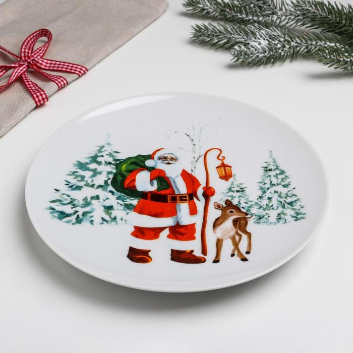 Плоская тарелка «Серия зимний лес, Дед Мороз, олень», 20 см 5242228