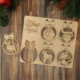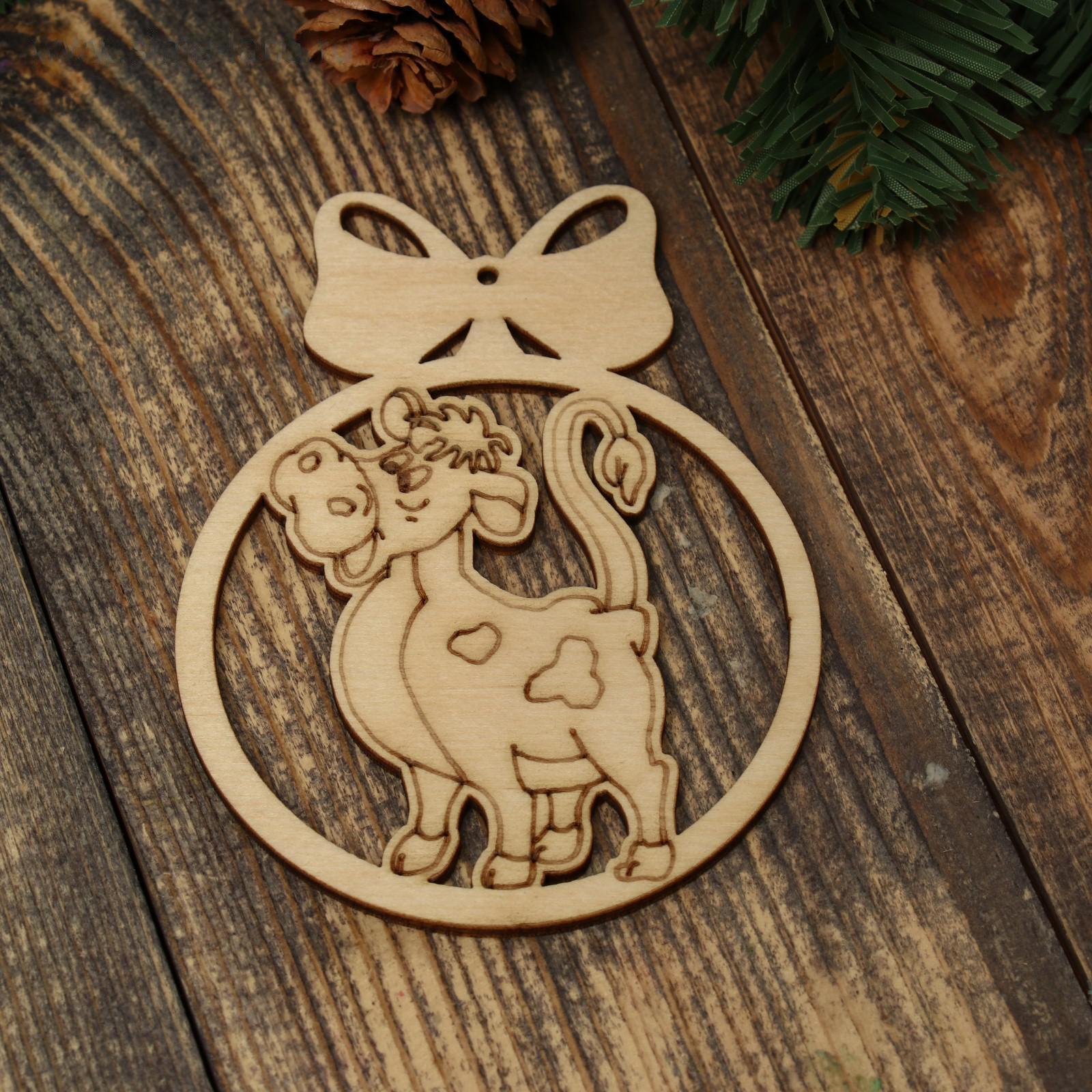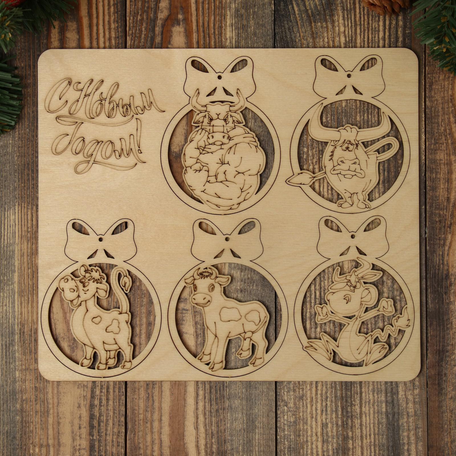 Набор ёлочных украшений "Бычки и бант №3. С новым годом!", 5 шт., под роспись, 7,5х10 см 5416190