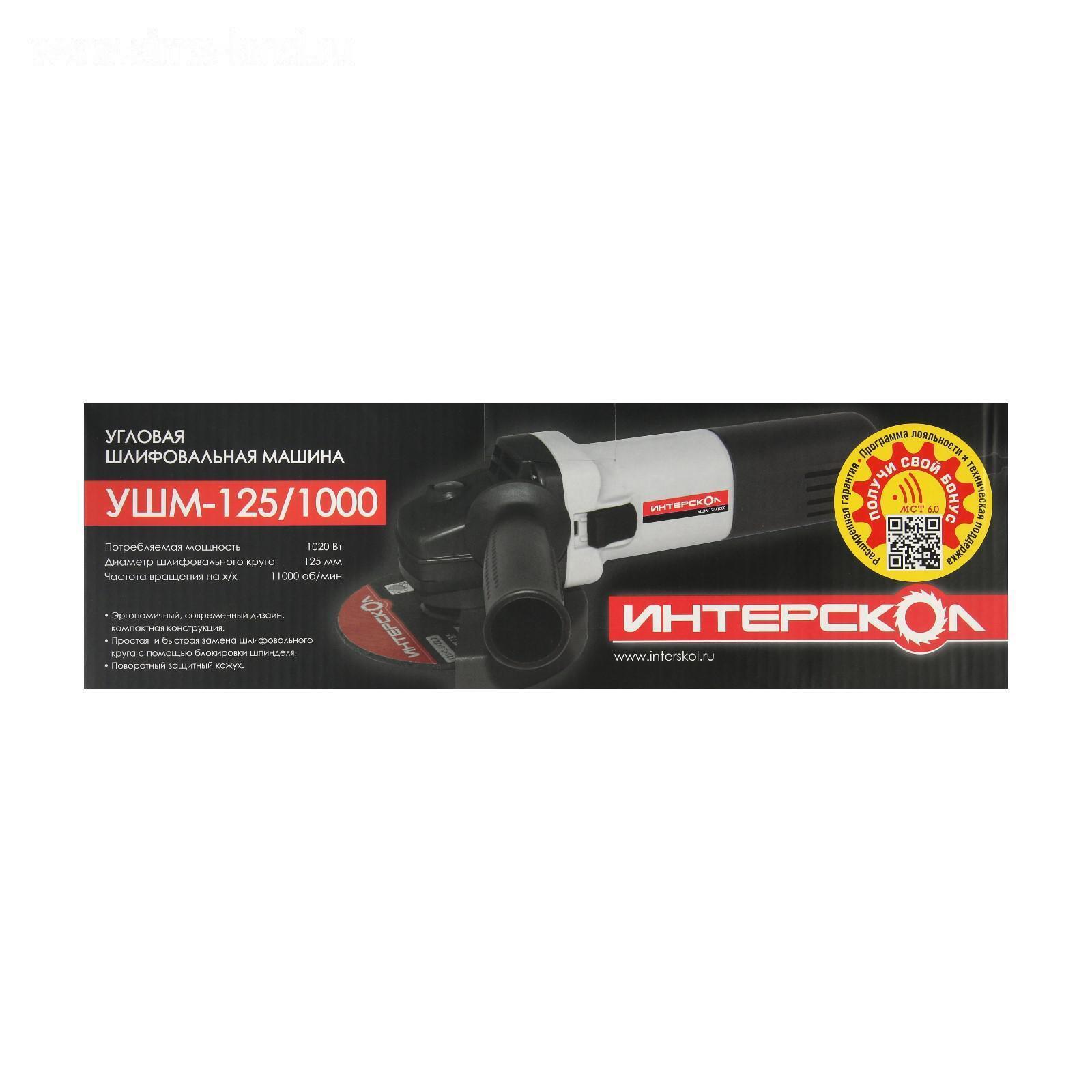 Угловая шлифмашина "ИНТЕРСКОЛ" УШМ-125/1000, 1000 Вт, 125х22.2 мм, М14, 11000 об/мин, 3 м 5404267