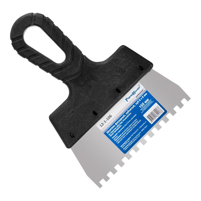 Шпатель фасадный "РемоКолор" 12-1-106, нержавеющая сталь, пластик, зуб 6х6 мм, 150 мм 5396572