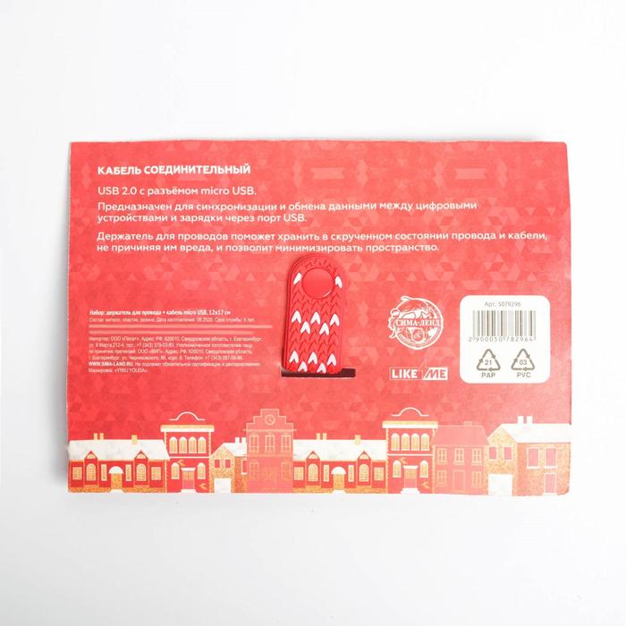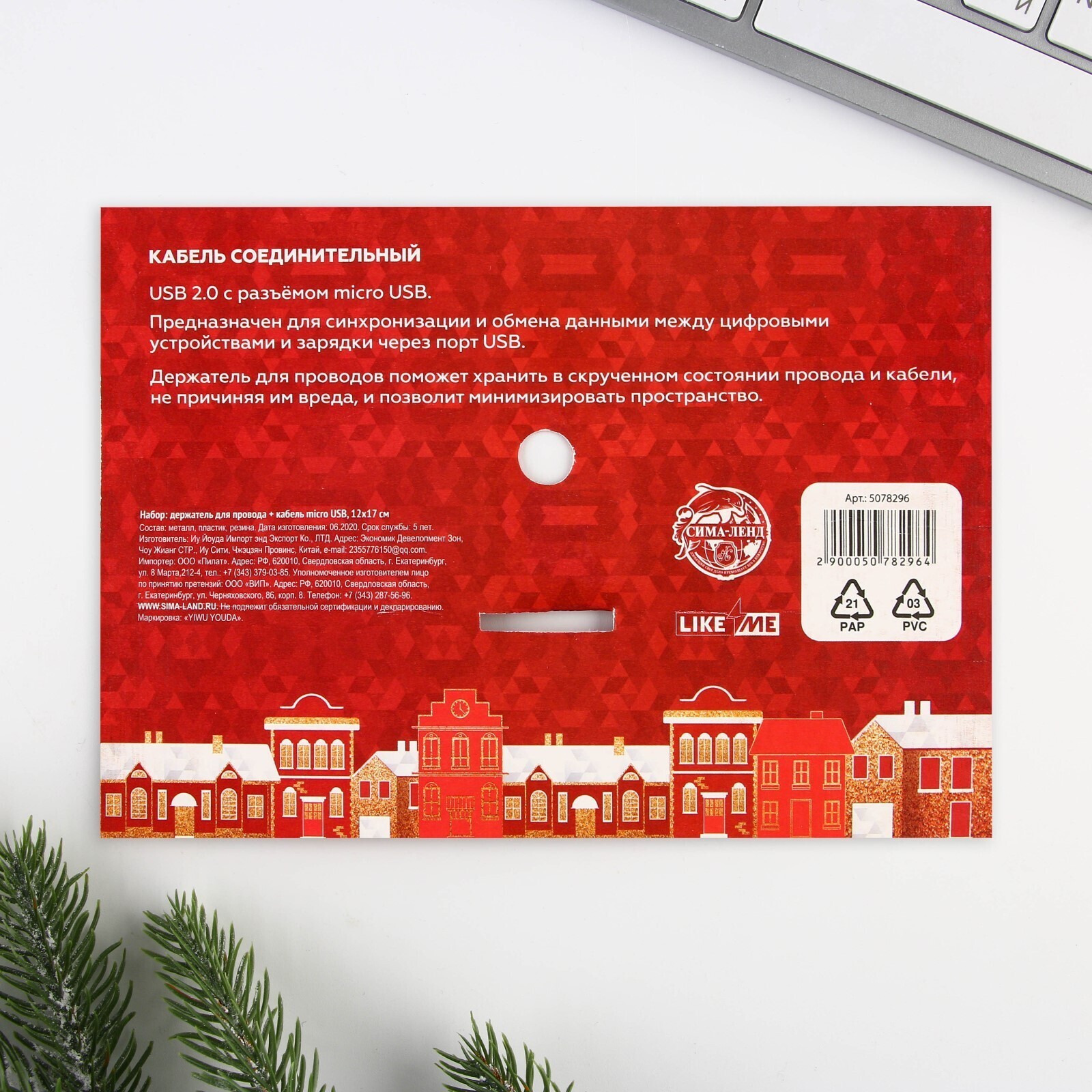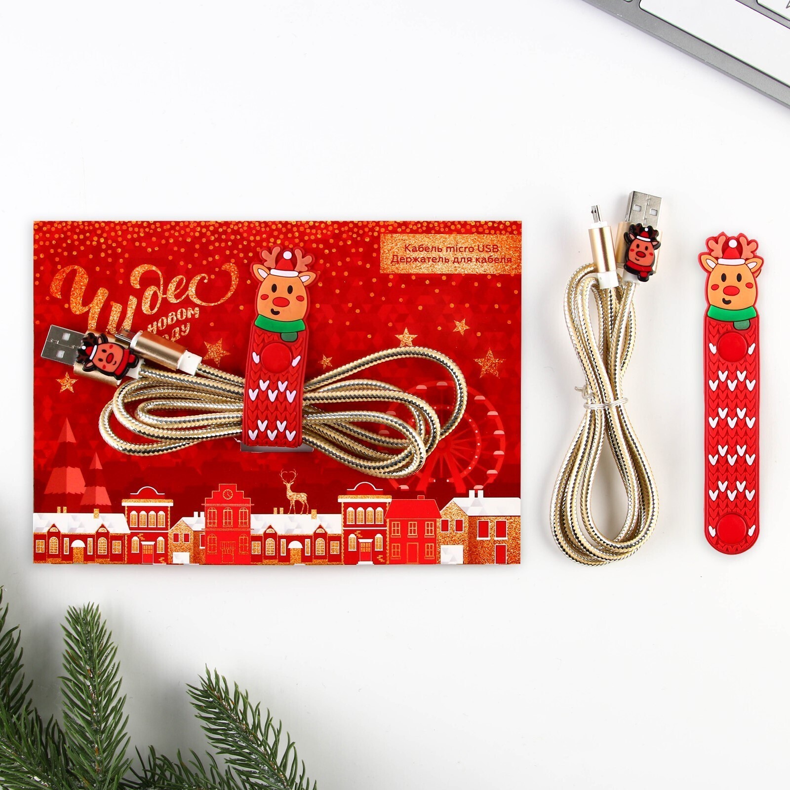 Набор держатель для провода+кабель micro USB «Чудес в Новом году», 1А, 1м 5078296