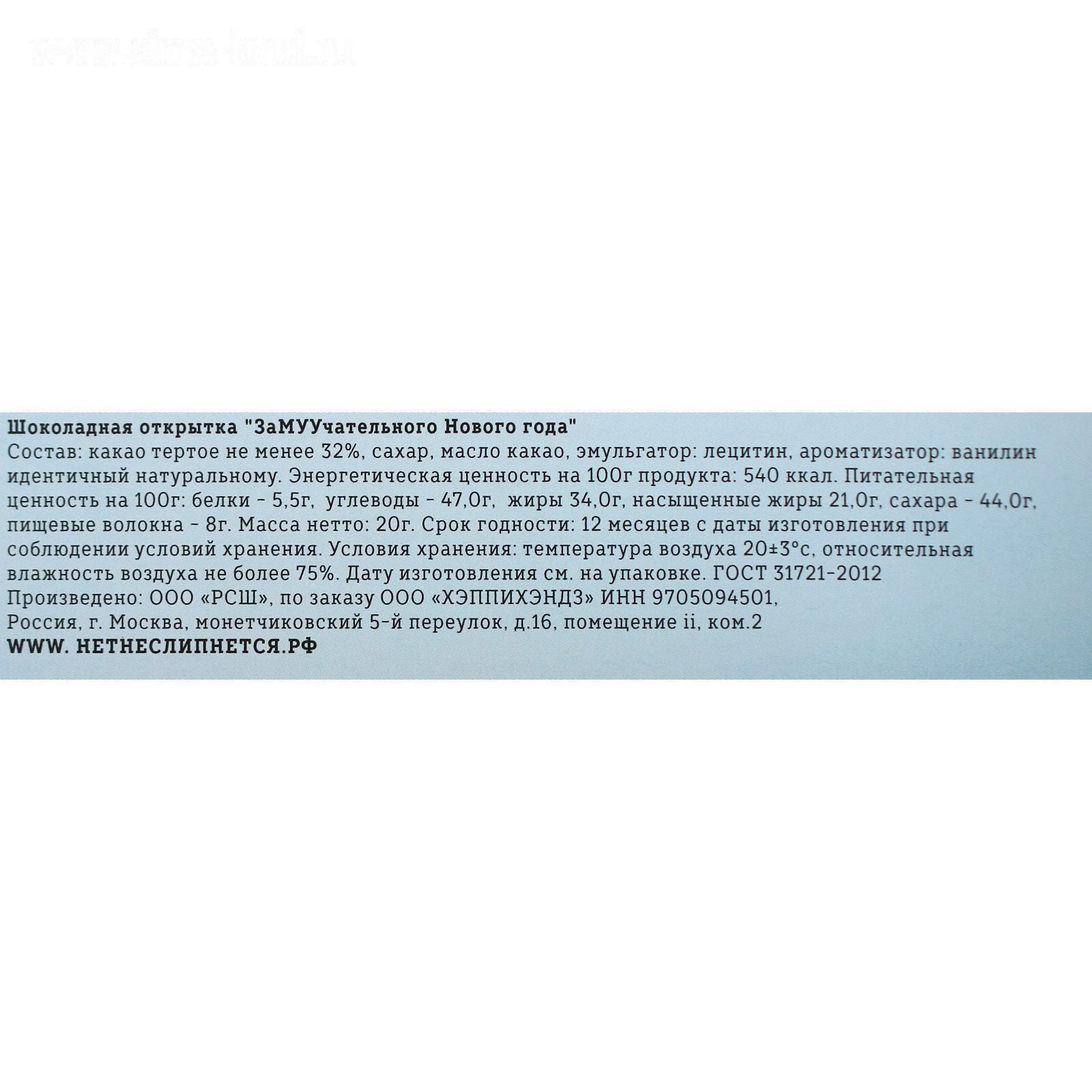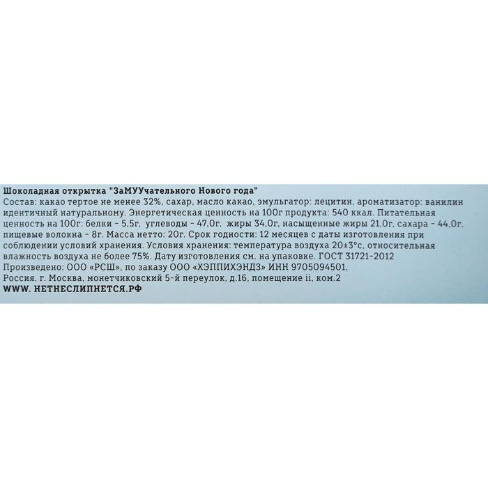 Шоколадная открытка "ЗаМУУчательного Нового года" 20 г 5298010