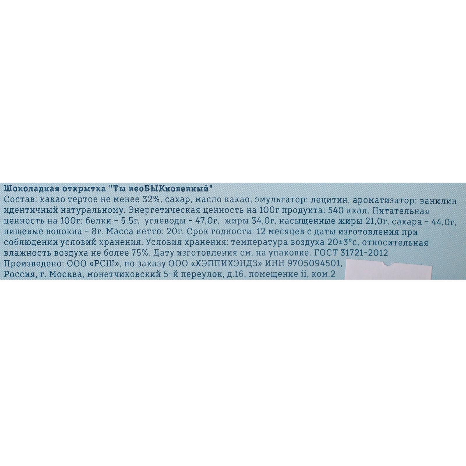 Шоколадная открытка "Ты неоБЫКновенный" 20 г 5298020