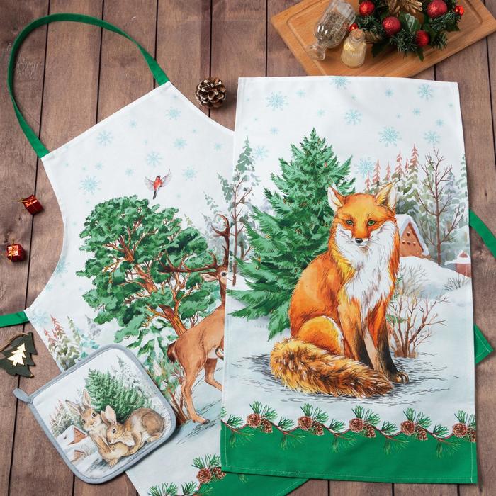 Набор подарочный "Этель" Новогодний лес, фартук, полотенце, прихватка 5389247