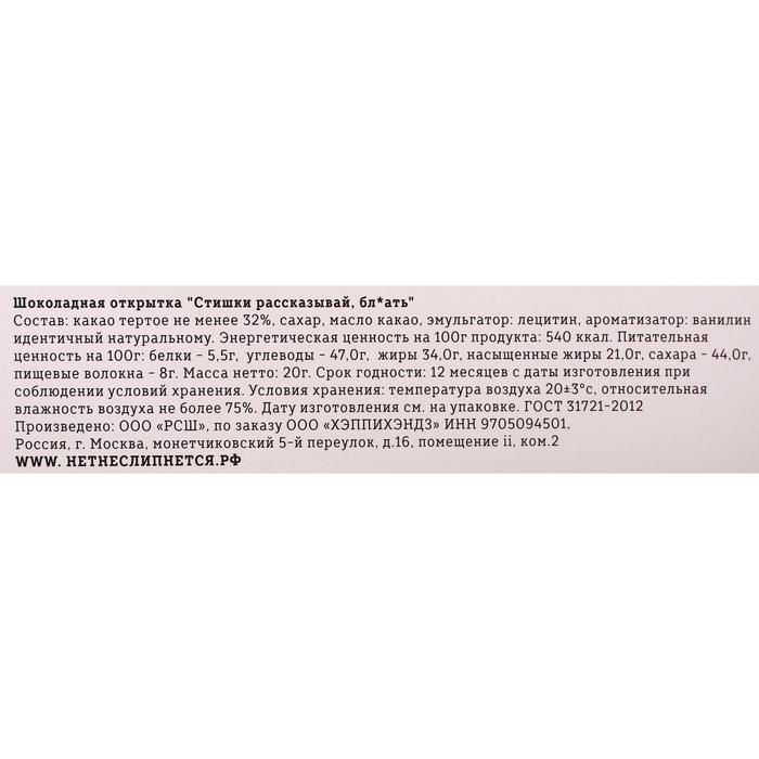 Шоколадная открытка "Стишки рассказывай, бл*ать" 20 г 5298027