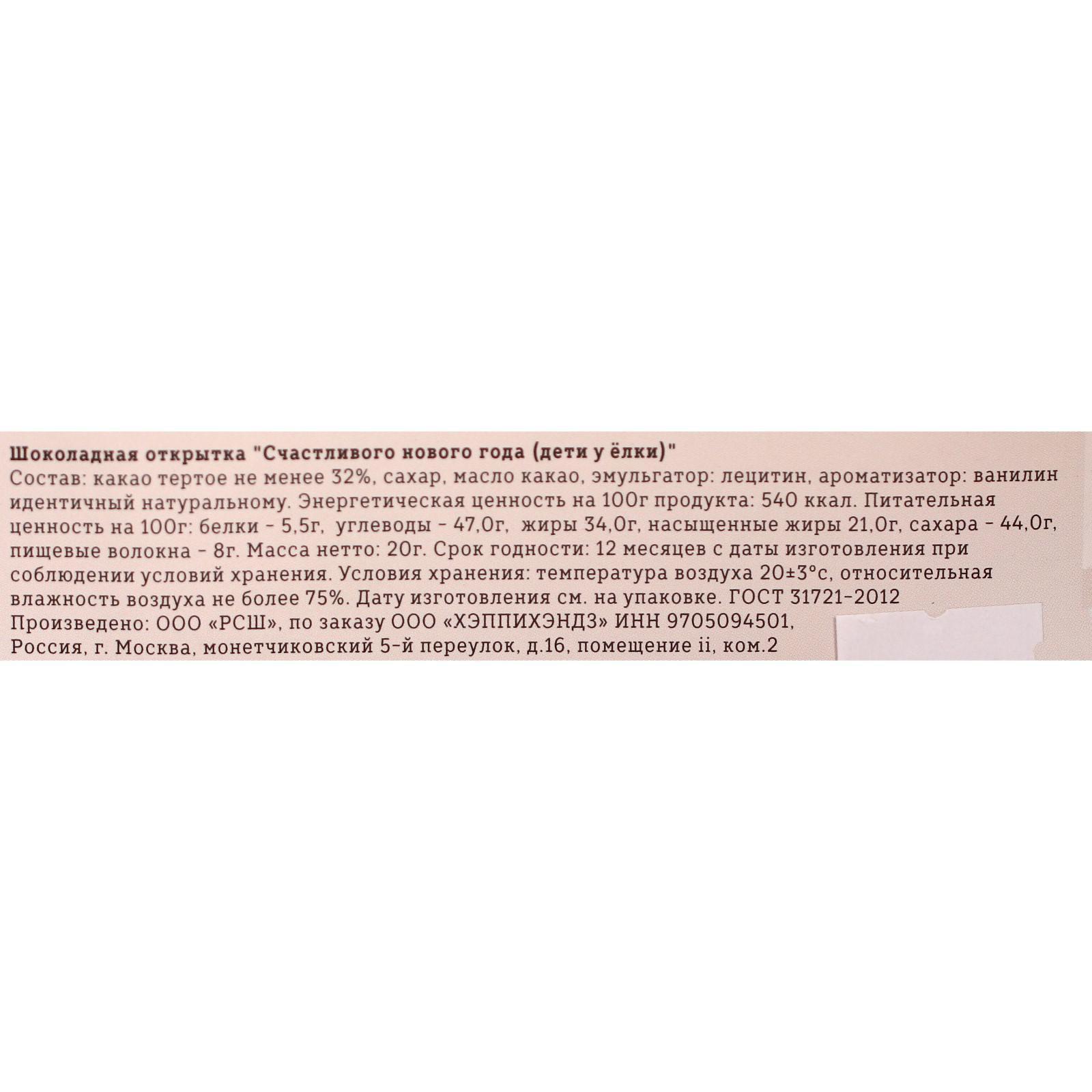 Шоколадная открытка "Счастливого нового года (дети у ёлки)" 20 г 5298017