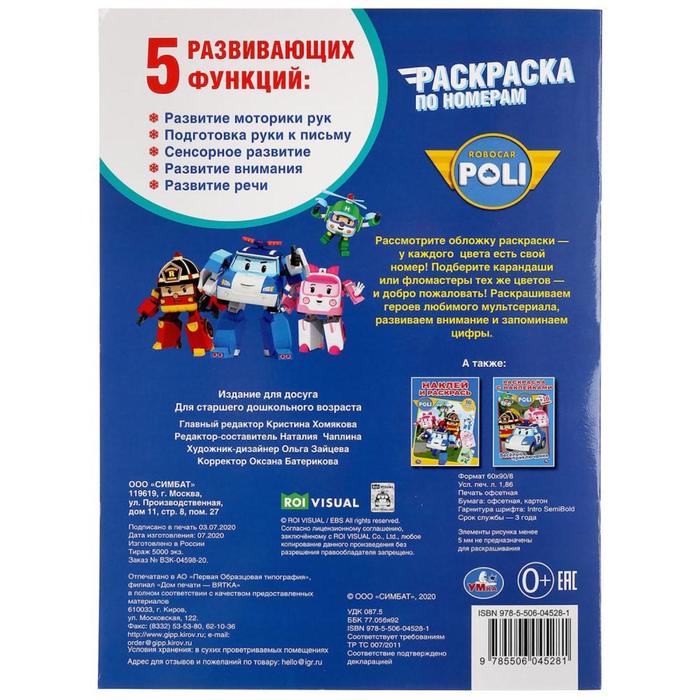Раскраска по номерам Верные друзья. Робокар Поли. А4, 16 стр. 5393160