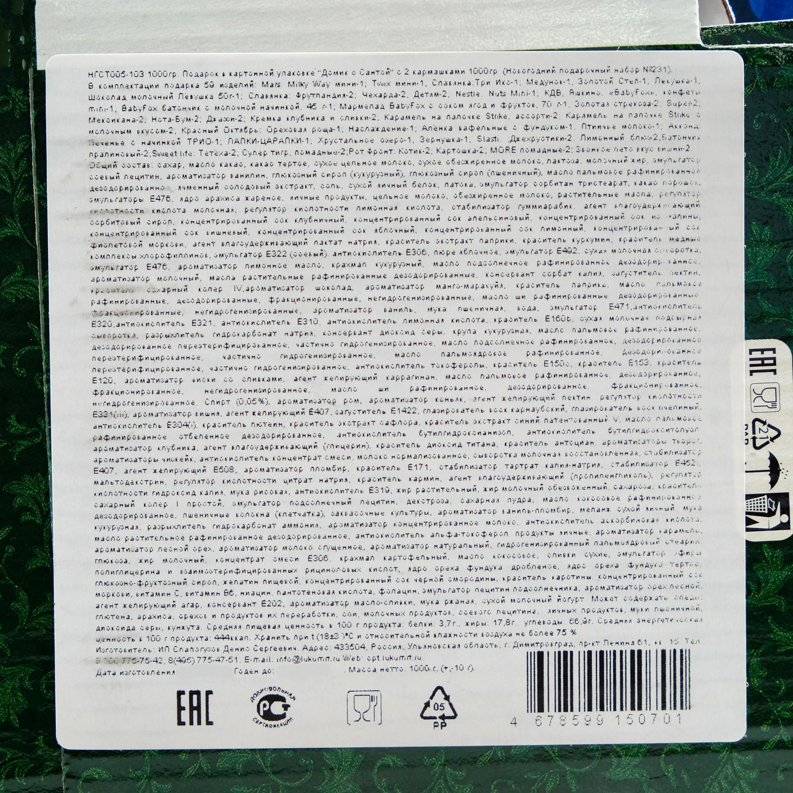 Новогодний подарок «Домик с Сантой» 1500 г 5393833