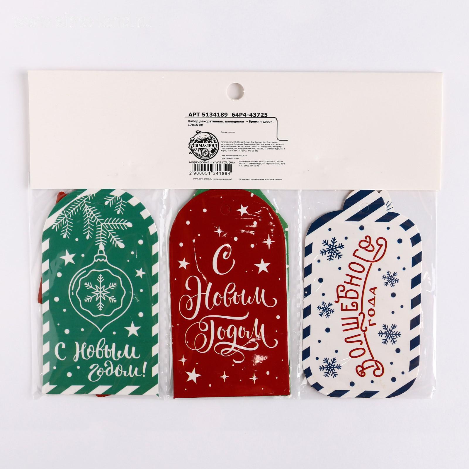 Набор декоративных шильдиков «Время чудес», 17х15 см 5134189
