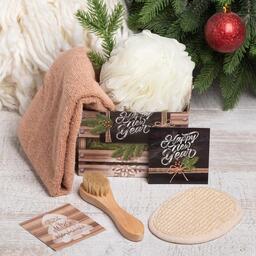 • Составляющие набора Варежка-мочалка, Декор, Мочалка, Открытка, Полотенце, Щётка
