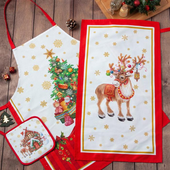 Набор подарочный "Этель" Новогодняя сказка, фартук, полотенце, прихватка 5389245