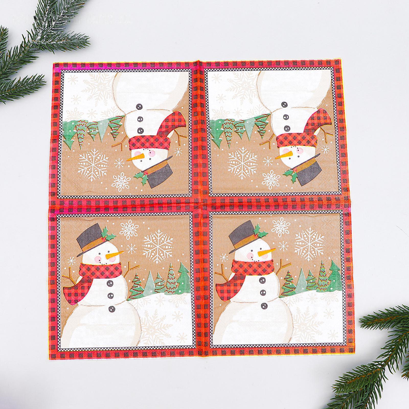 Салфетки бумажные "Снеговик" 33х33 см, набор 20 шт 5094400