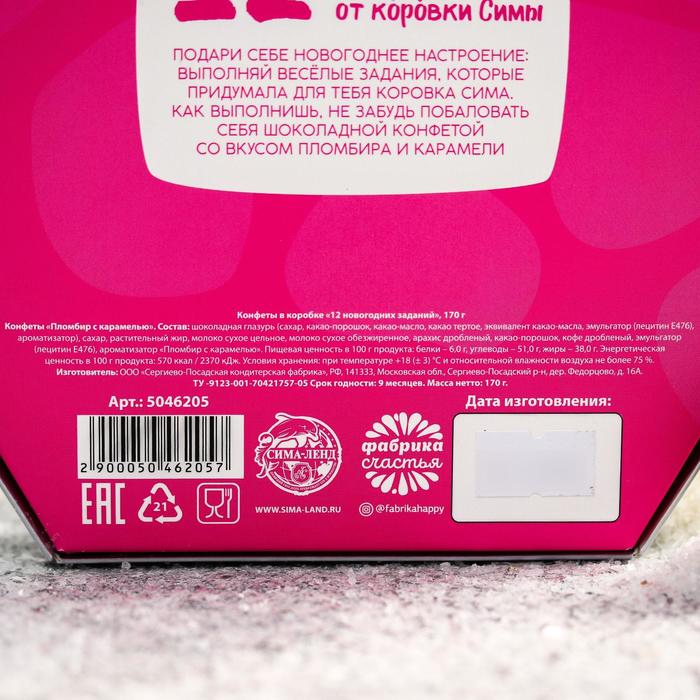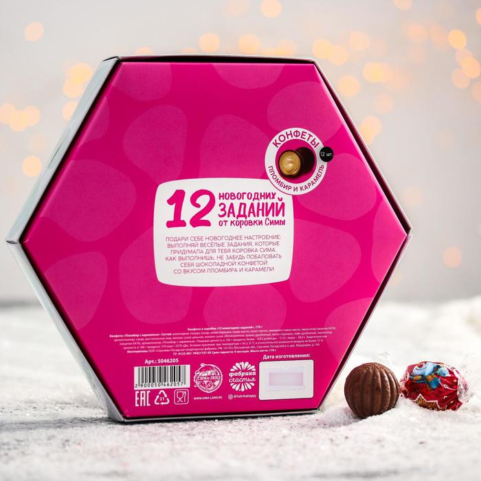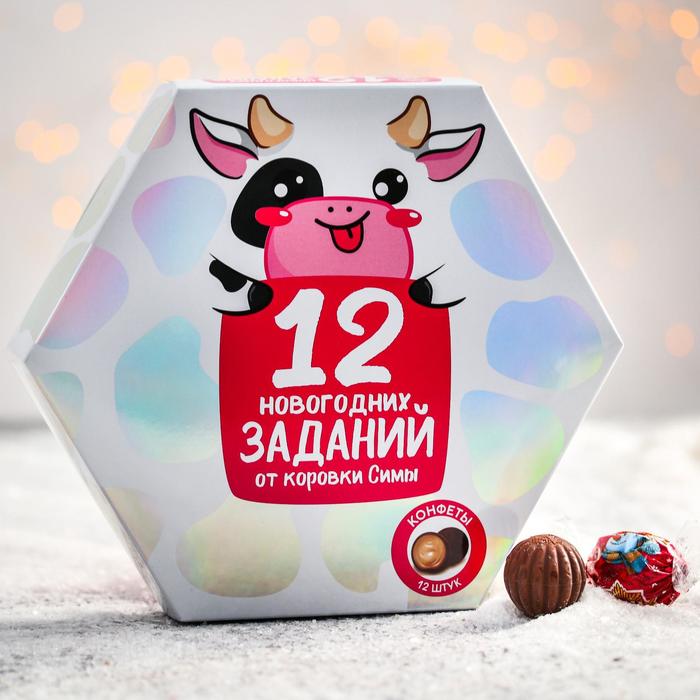 Конфеты шоколадные «Коровка Сима»: 12 новогодних заданий, со вкусом пломбира с карамелью, 170 г 5046205