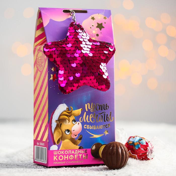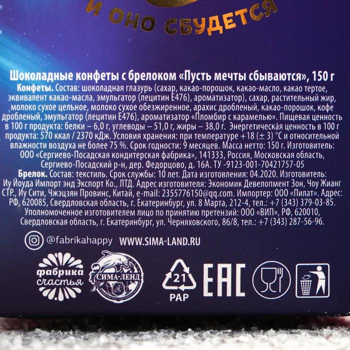 Шоколадные конфеты с брелоком «Пусть мечты сбываются»: со вкусом пломбира с карамелью, 150 г 5004693