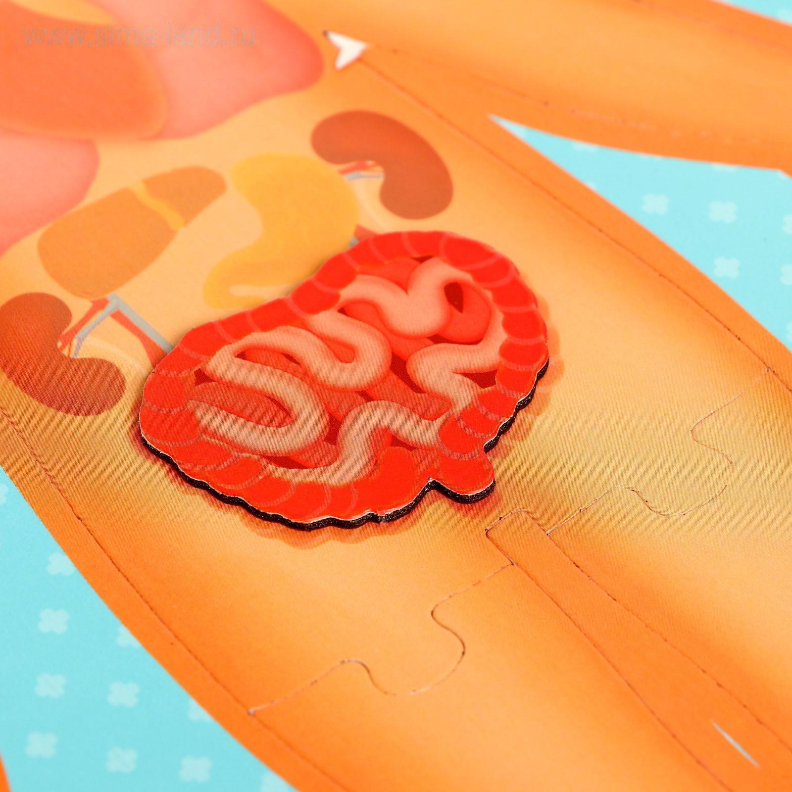 С магнитным набором «Тело человека» ребёнок узнает, как устроен человеческий организм, запомнит названия органов и их внешний вид. Расскажите малышу, какую роль выполняет каждый из них. В комплекте представлены 3 больших магнитных пазла, которые составляют тело человека. А для каждого органа — отдельный магнит, их всего 9 штук.