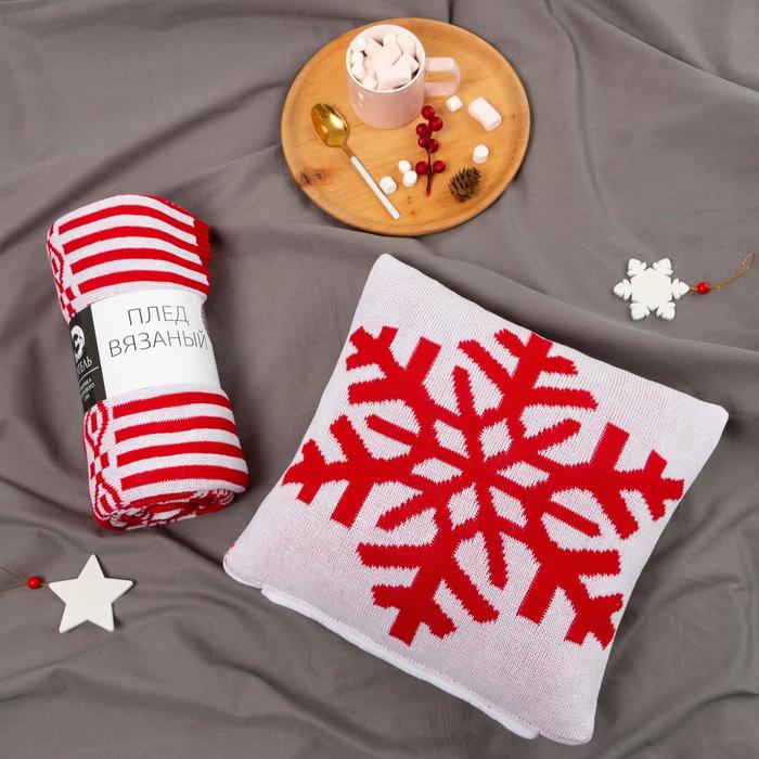 Чехол на подушку вязаный "Этель" Снежинки, 35х35 см 5091228