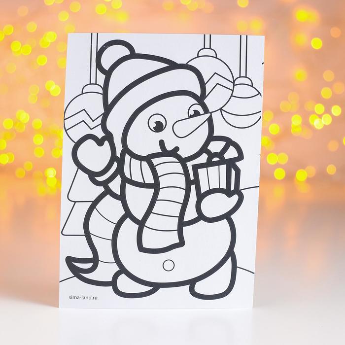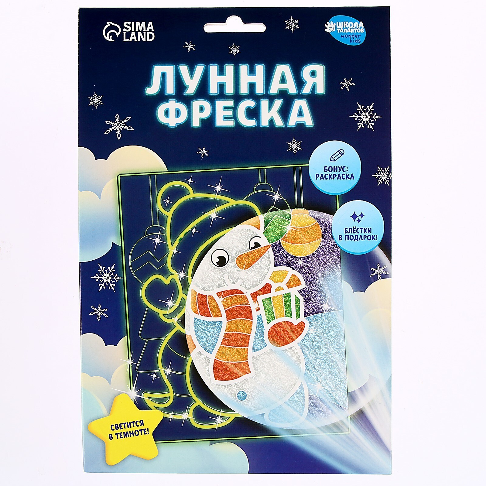 Лунная фреска «Снеговик с подарком» А5 4963024