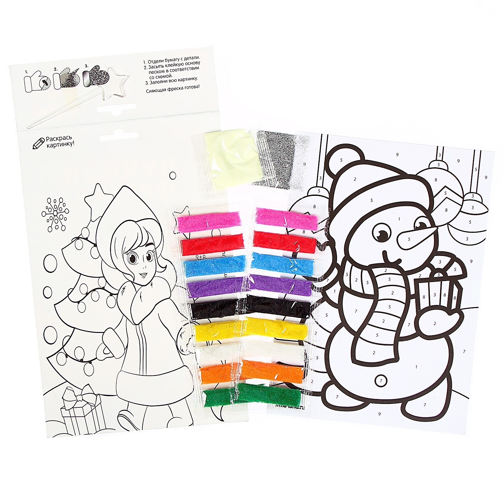 Ваш ребёнок самостоятельно украсит фреску песком и блёстками. Такой шедевр станет отличным подарком для близких людей!