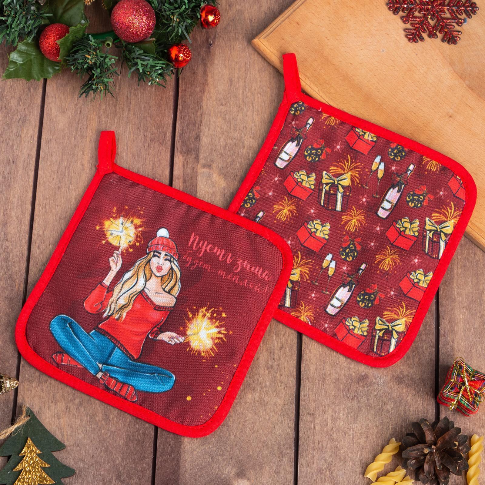 Набор кух."Пусть зима будет теплой" прихватка 17х17 - 2шт. 35% хл,65% п/э 5148677