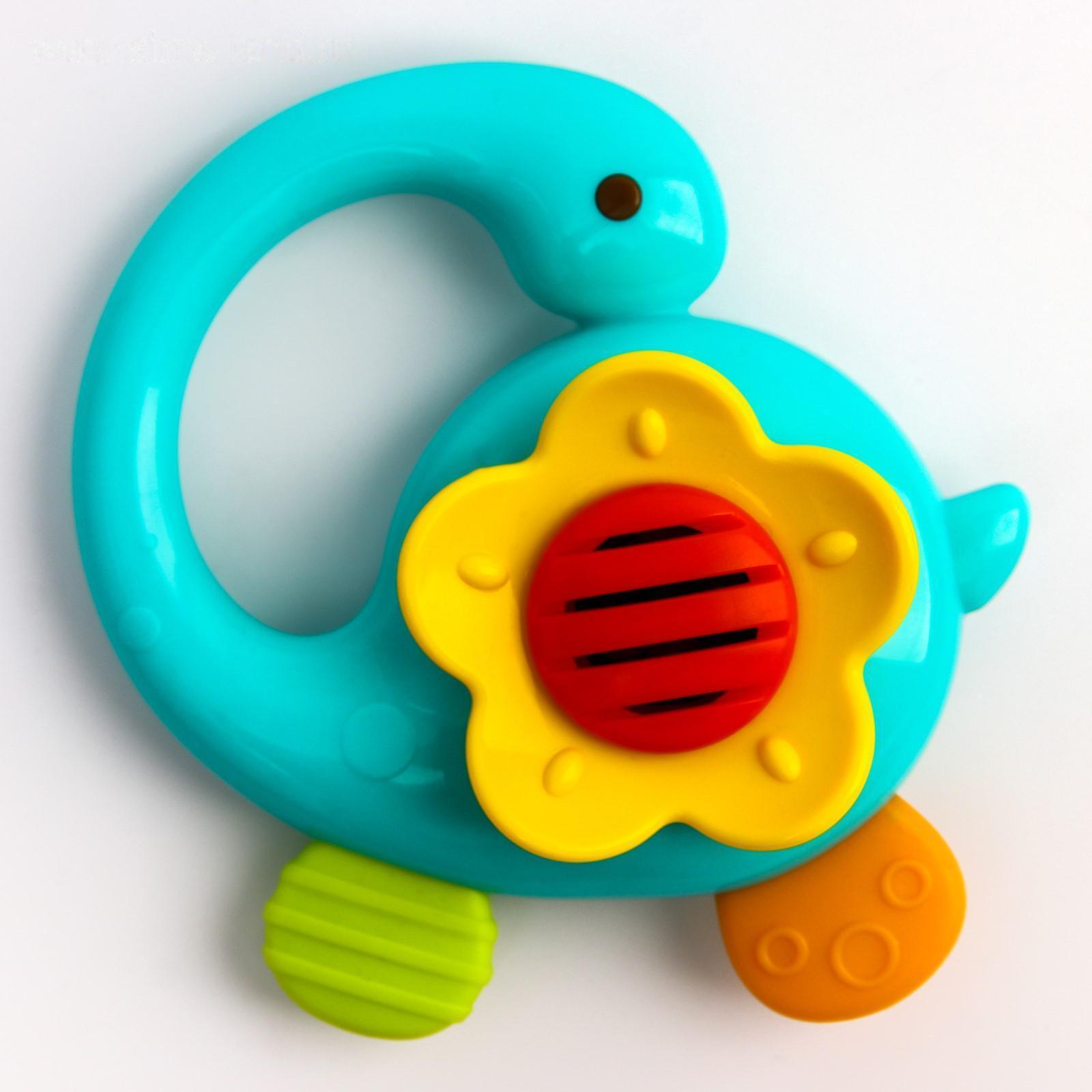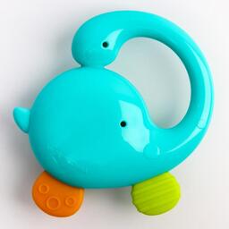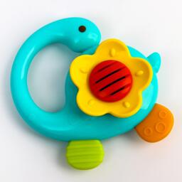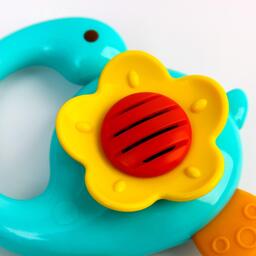 Звук в данной модели появляется при встряхивании. Причудливая форма надолго займёт внимание карапуза. Лёгкую вещицу удобно держать в маленьких ладошках, на ручке есть рельефные элементы.