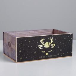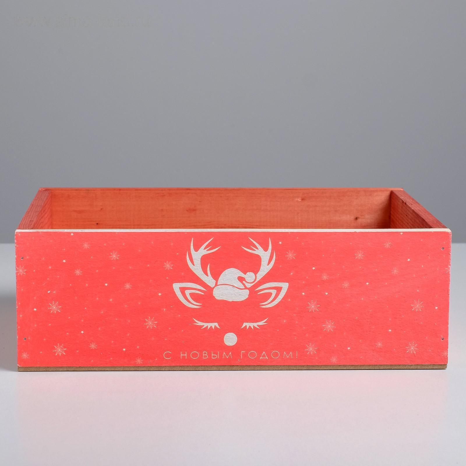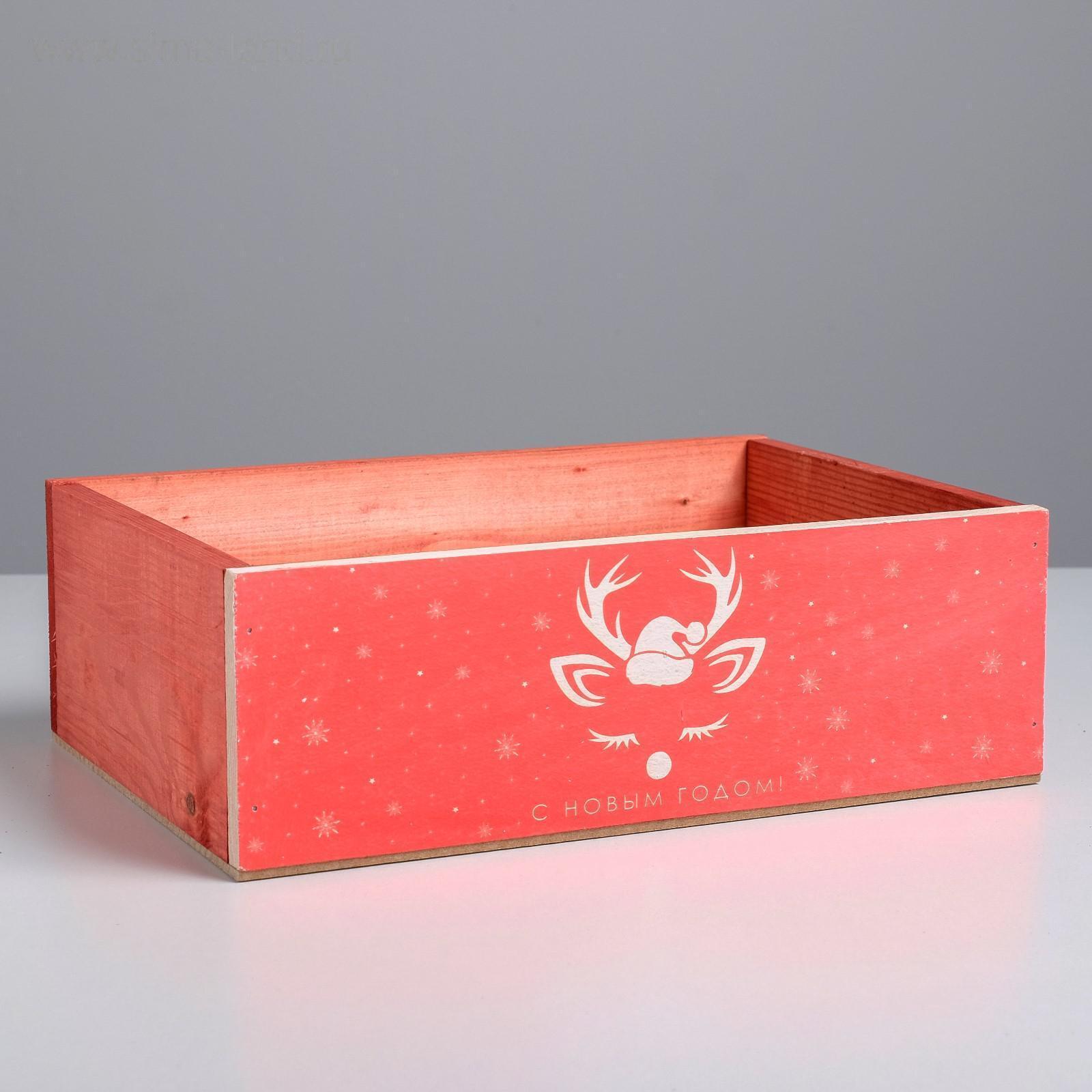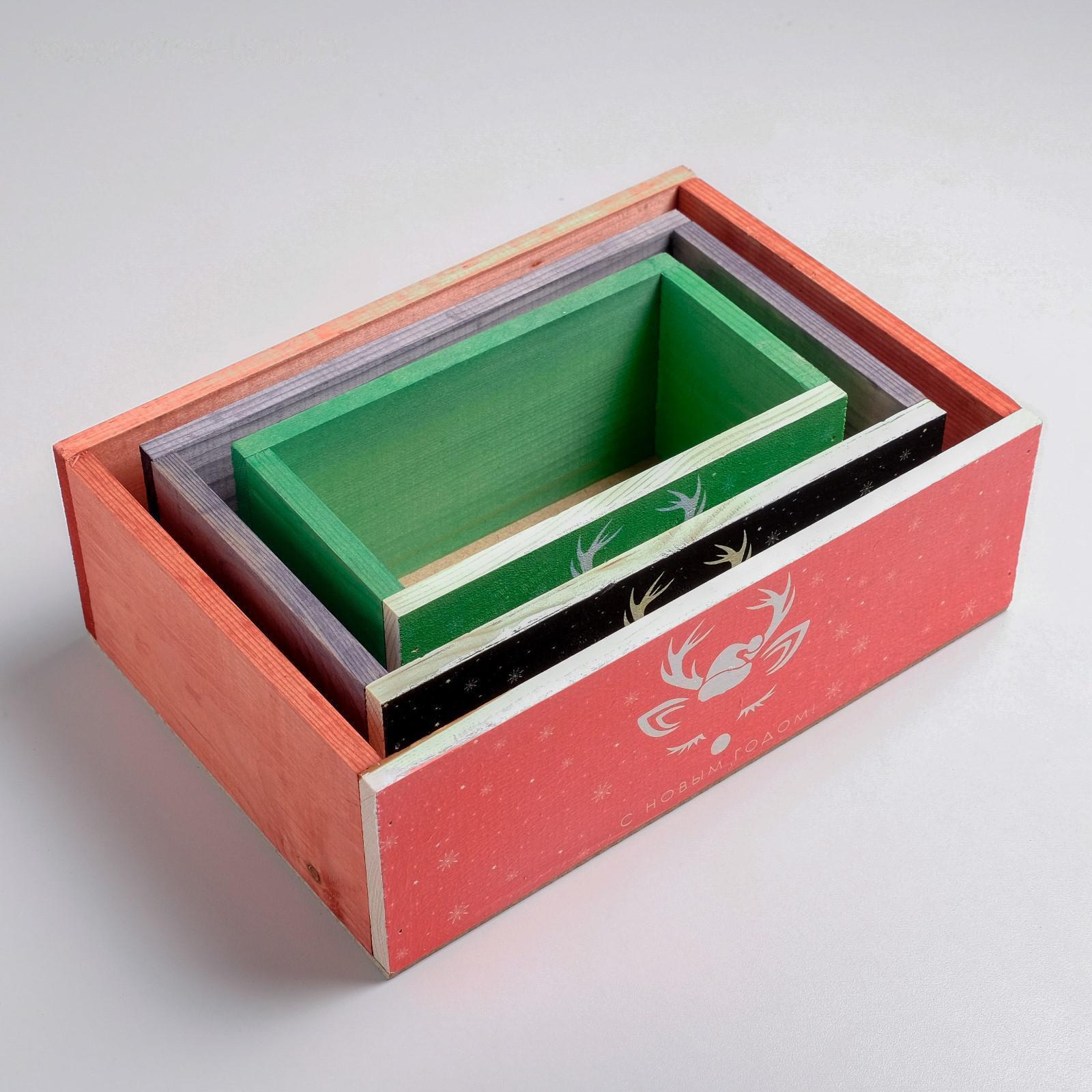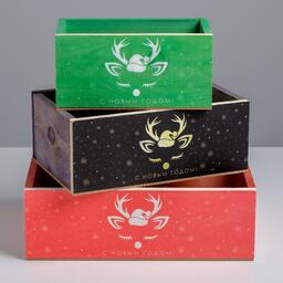 Набор деревянных ящиков 3 в 1 без ручки «Новогодний олень» 5240355