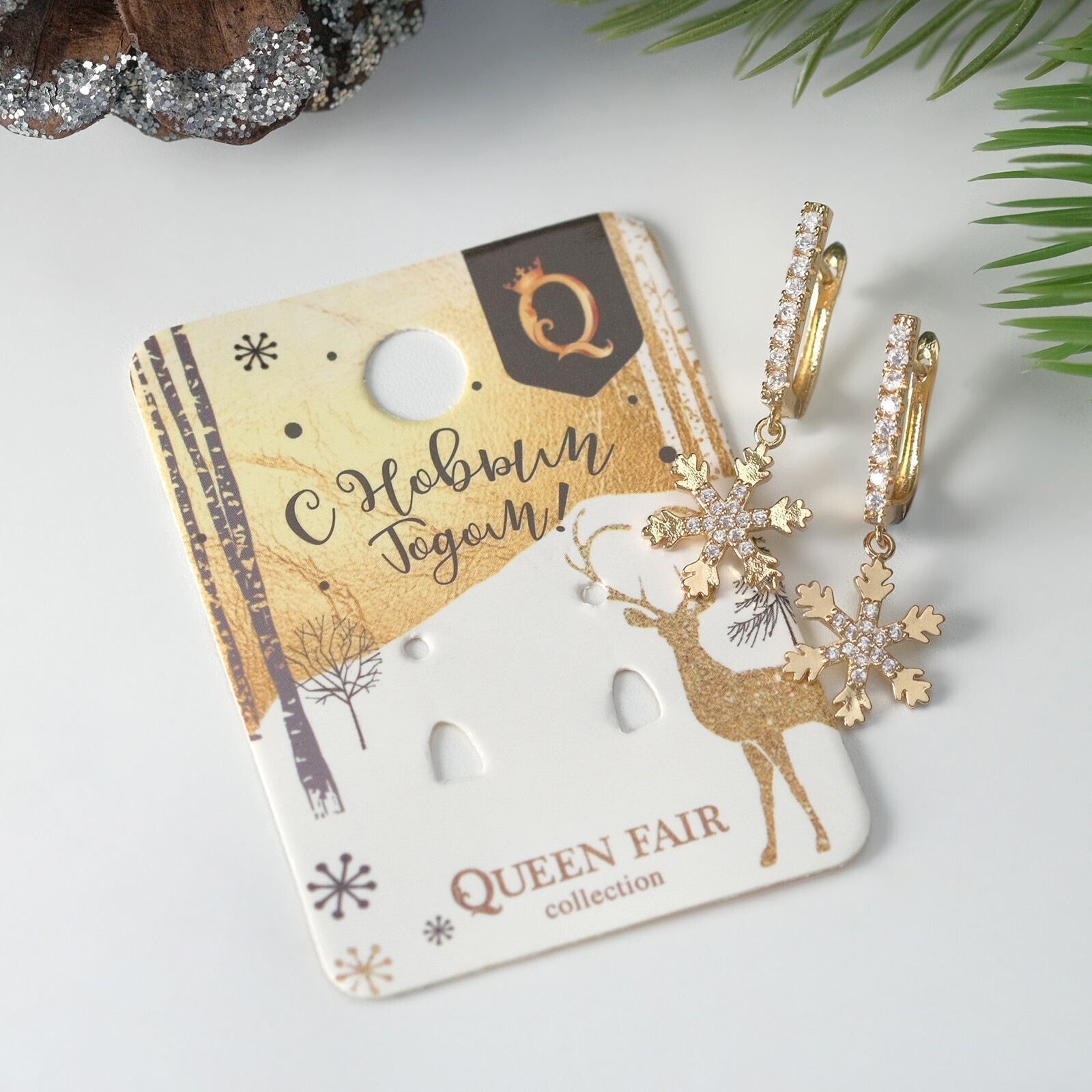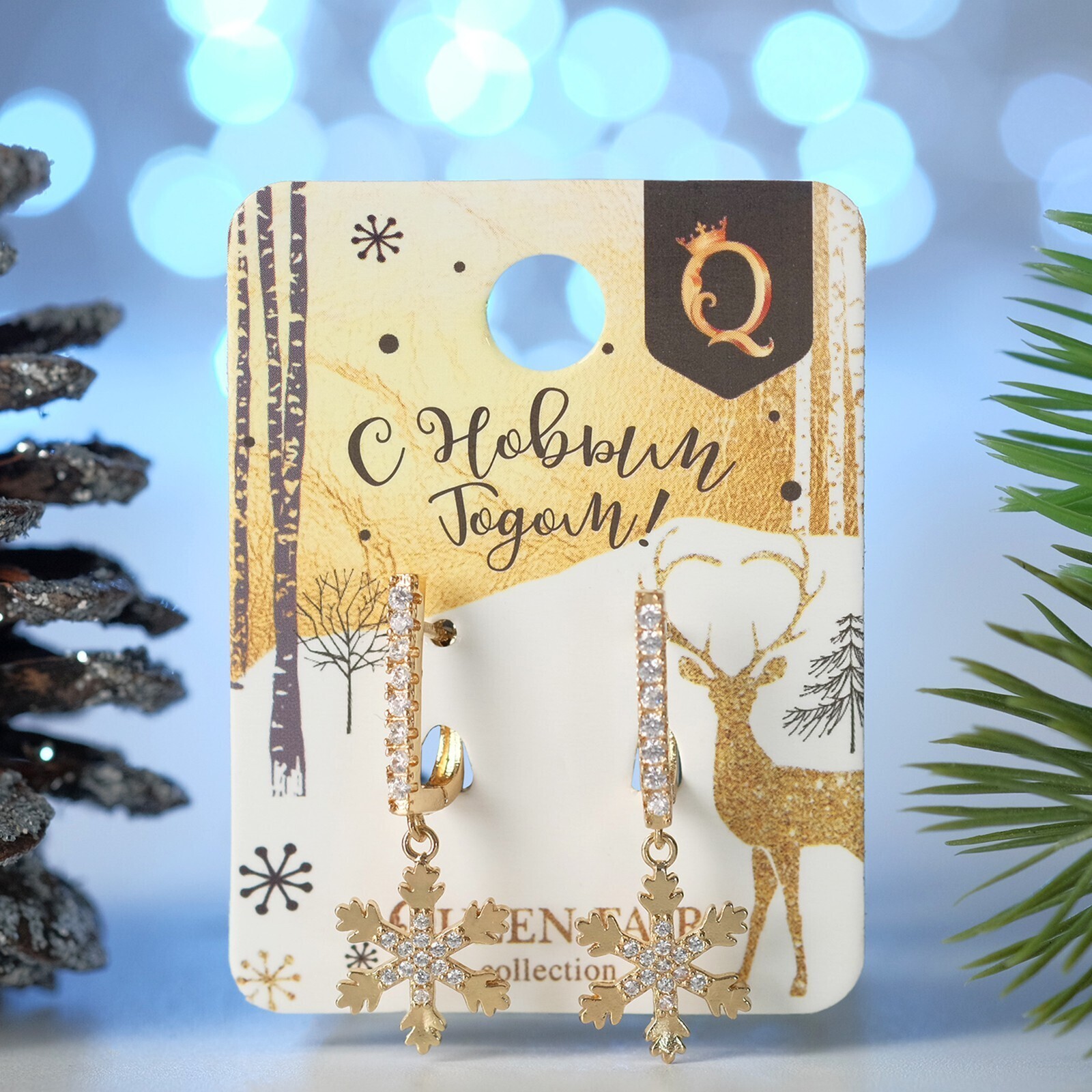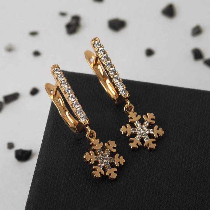 Серьги со стразами "Богема" снежинки, цвет белый в золоте 5393525