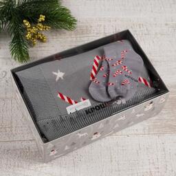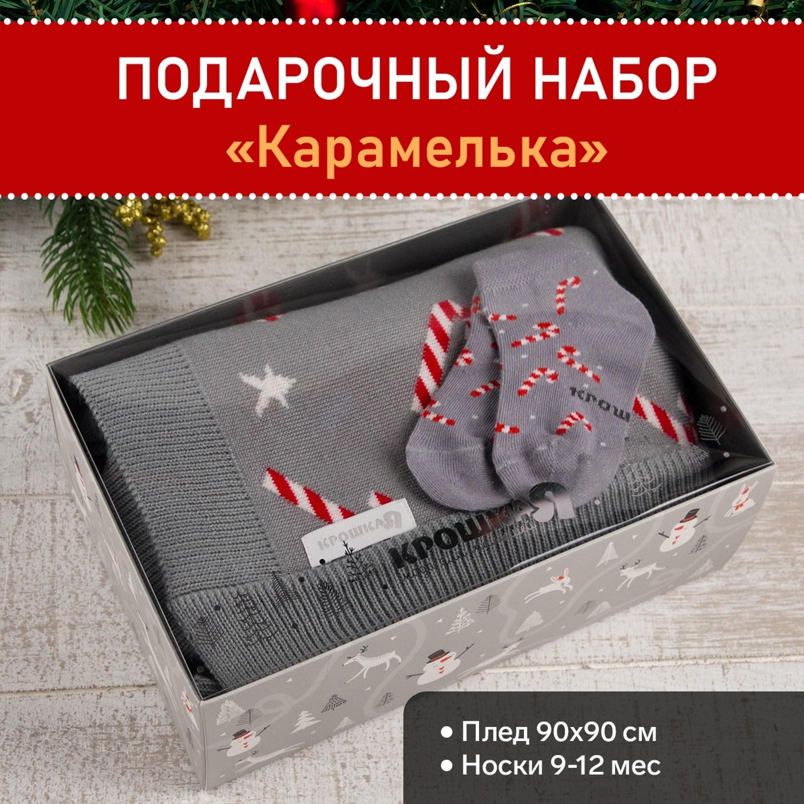 Набор подарочный "Карамелька" вязаный плед 90х90 см, носки 9-12 мес 5181694