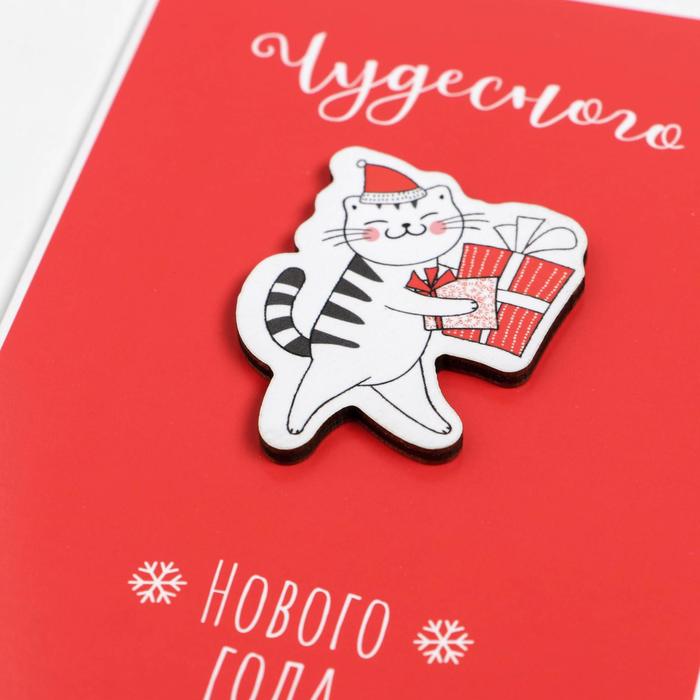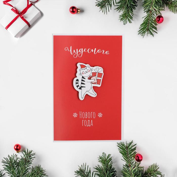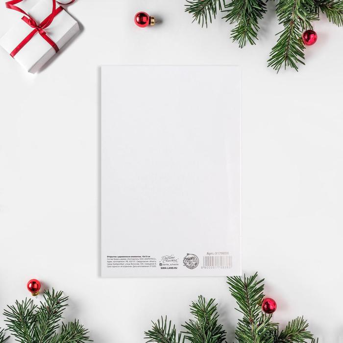 Открытка с деревянным элементом "Чудесного Нового Года!" 10 х 15см 5179838
