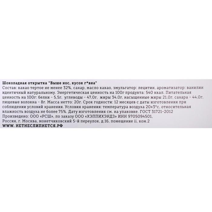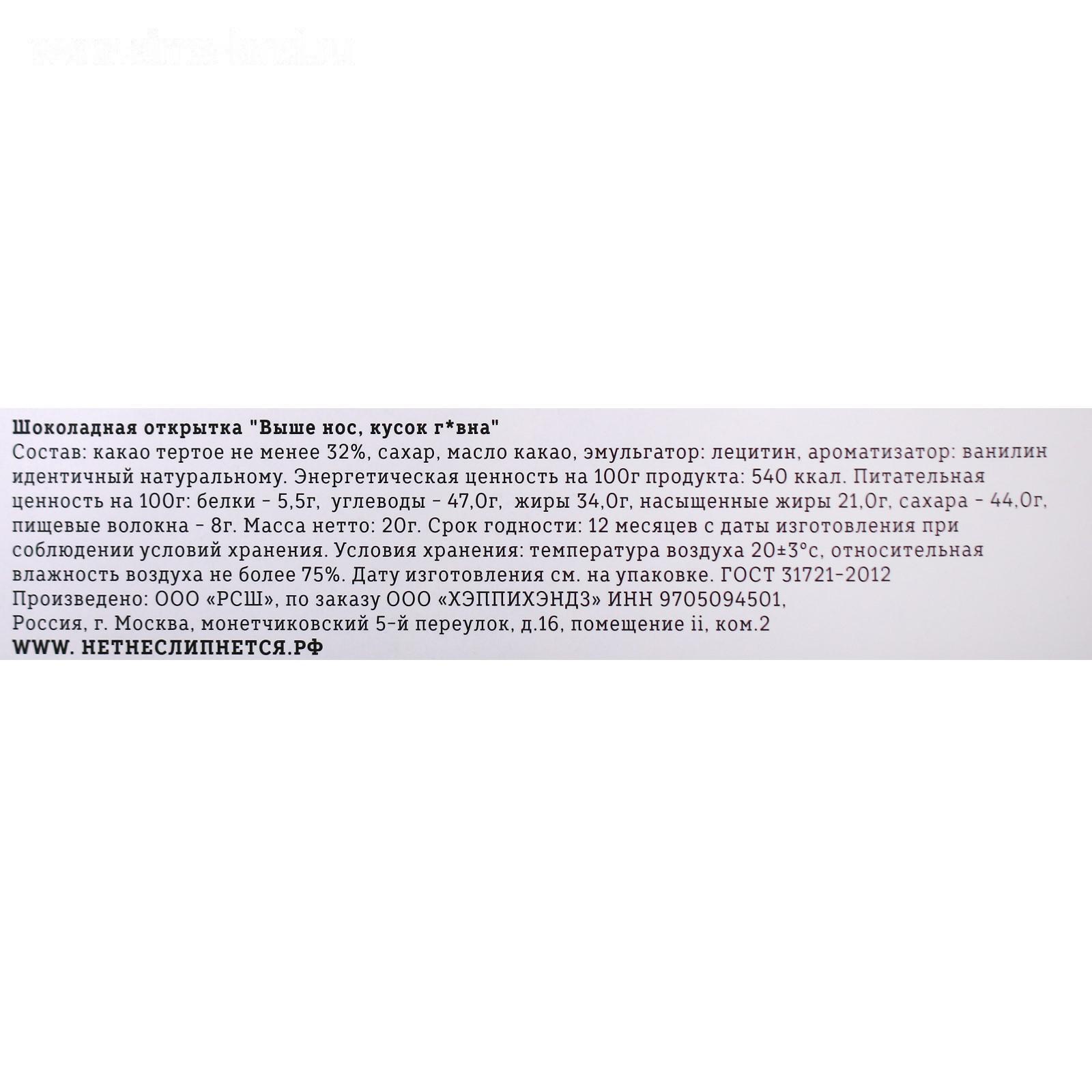 Шоколадная открытка "Выше нос, кусок г*вна" 20 г 5298026