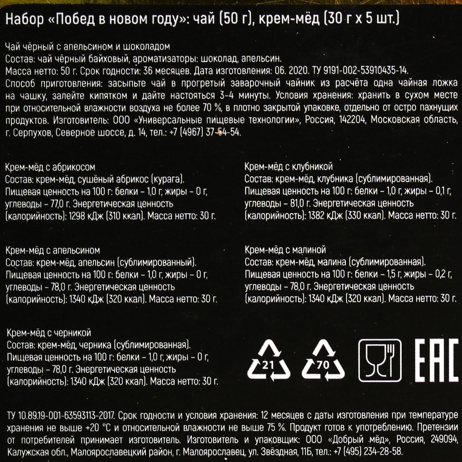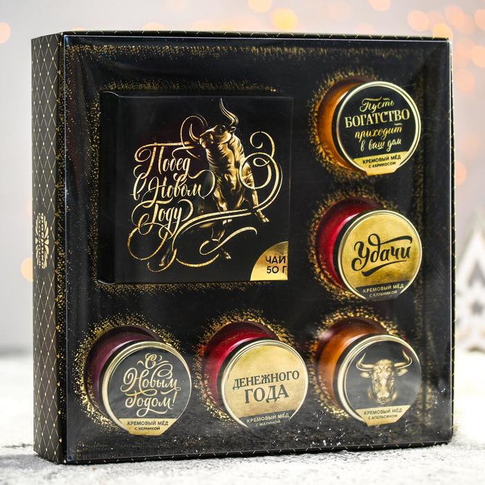 Подарочный набор «Побед в Новом году»: чай с ароматом апельсина и шоколада 50 г, крем-мед 30 г х 5 шт. 5012438