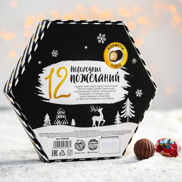 Конфеты шоколадные «Золотая сказка»: 12 новогодних пожеланий, со вкусом пломбира с карамелью, 170 г 5046206