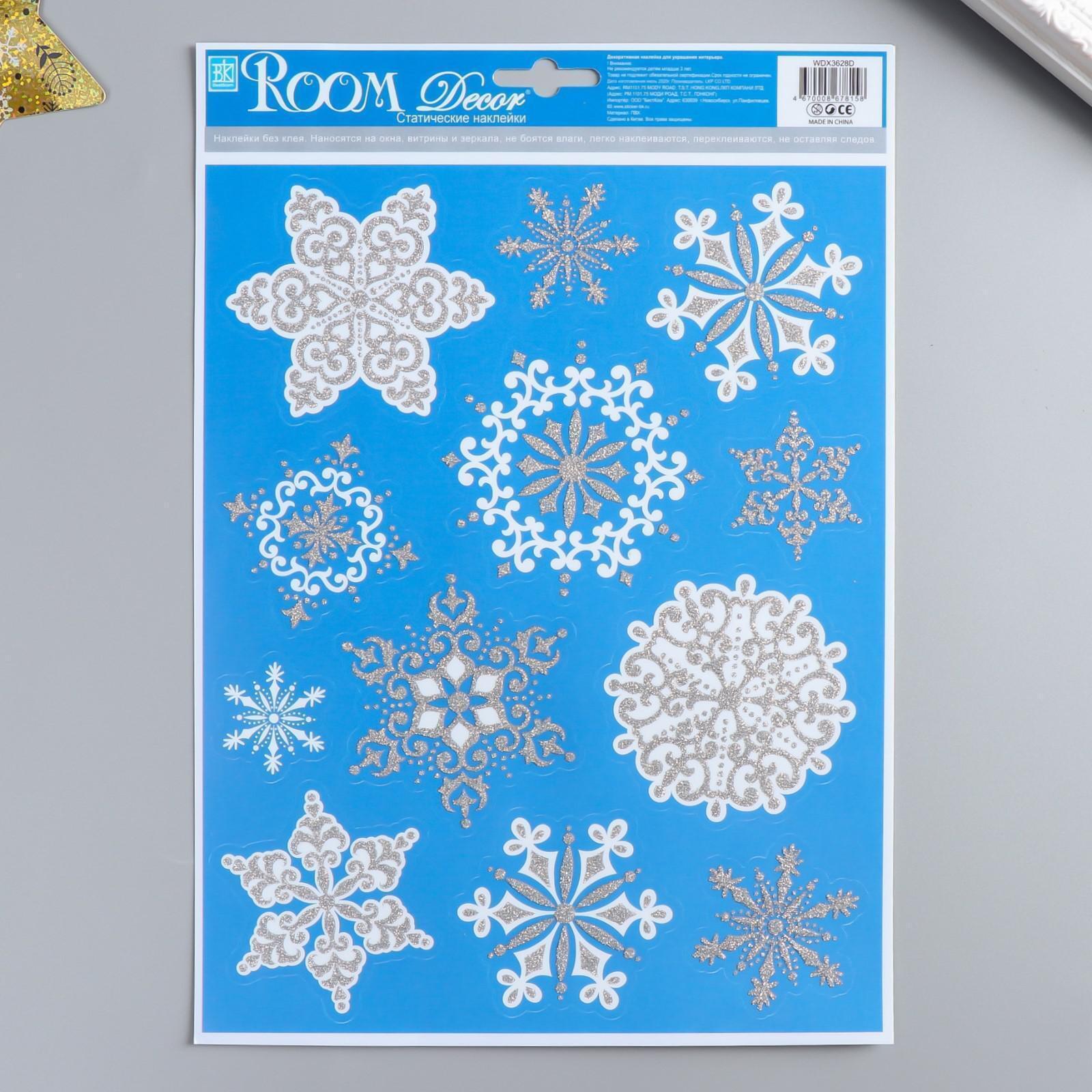 Наклейки- голограммы Room Decor "Снежинки 4" 22х31 см 5054680