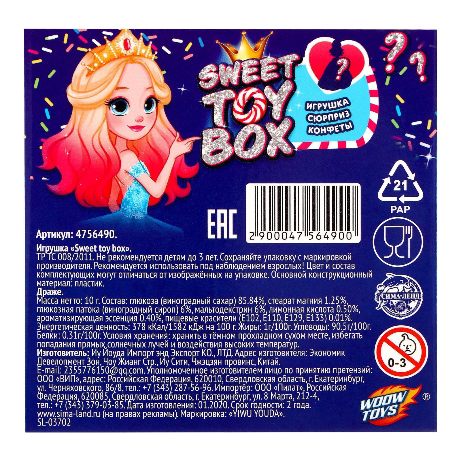 Игрушка сюрприз Sweet toy box, конфеты, принцесса 4756490