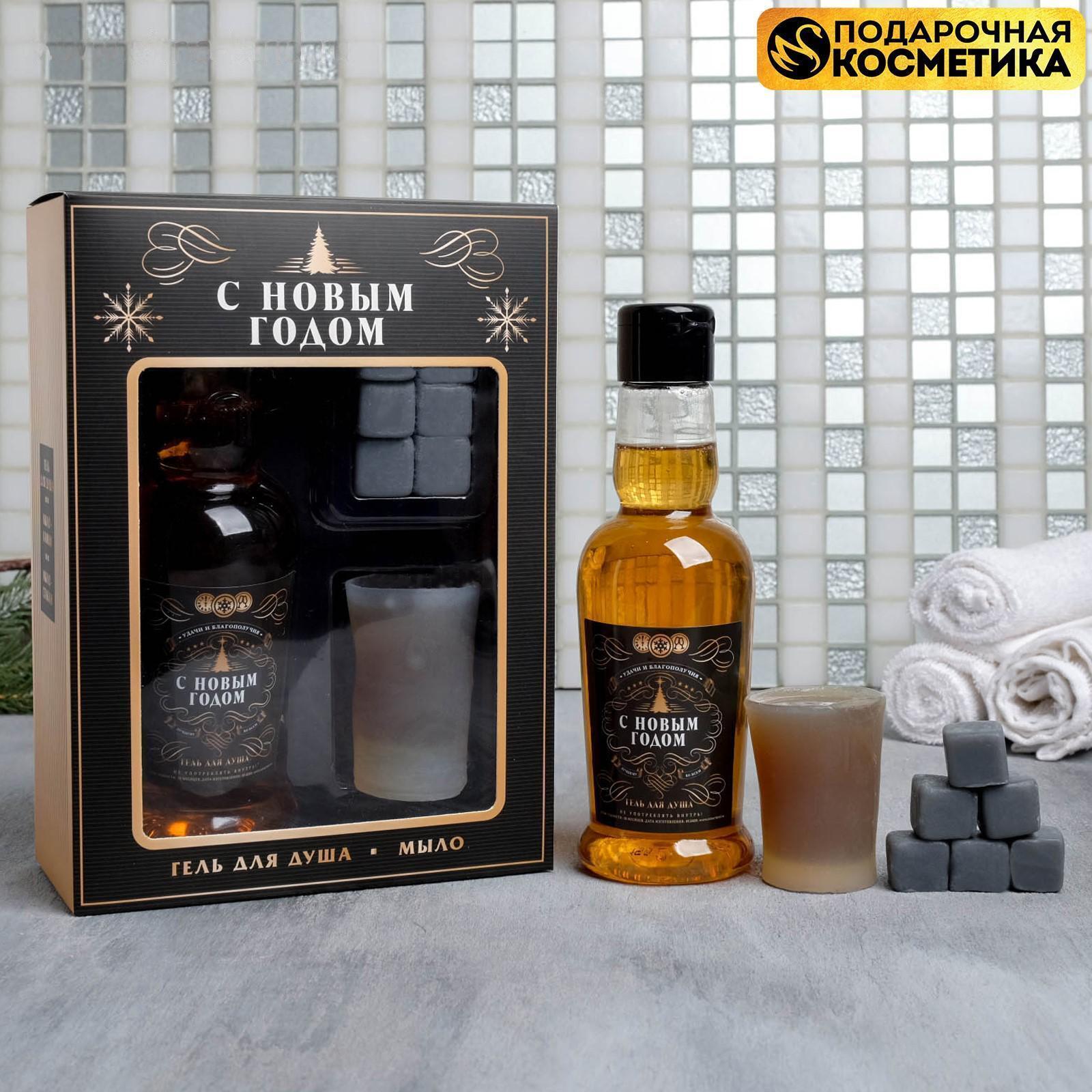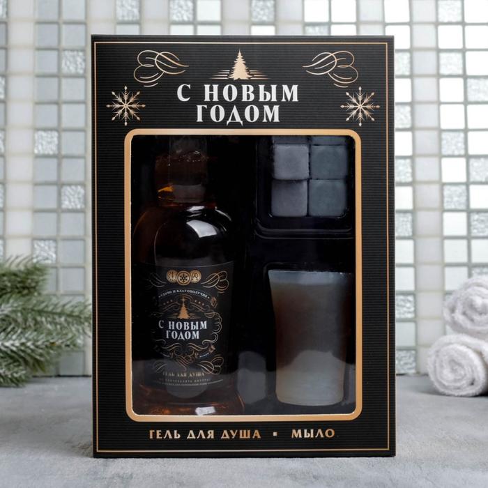Набор "С Новым годом" гель для душа, мыло-рюмка, мыло-камни 4803460
